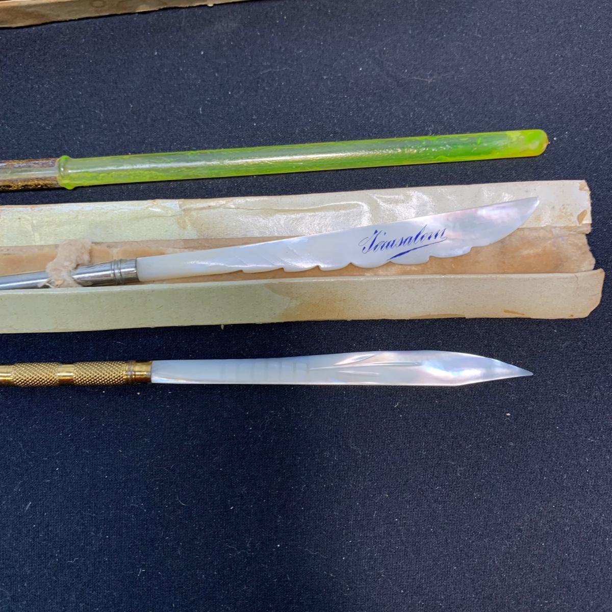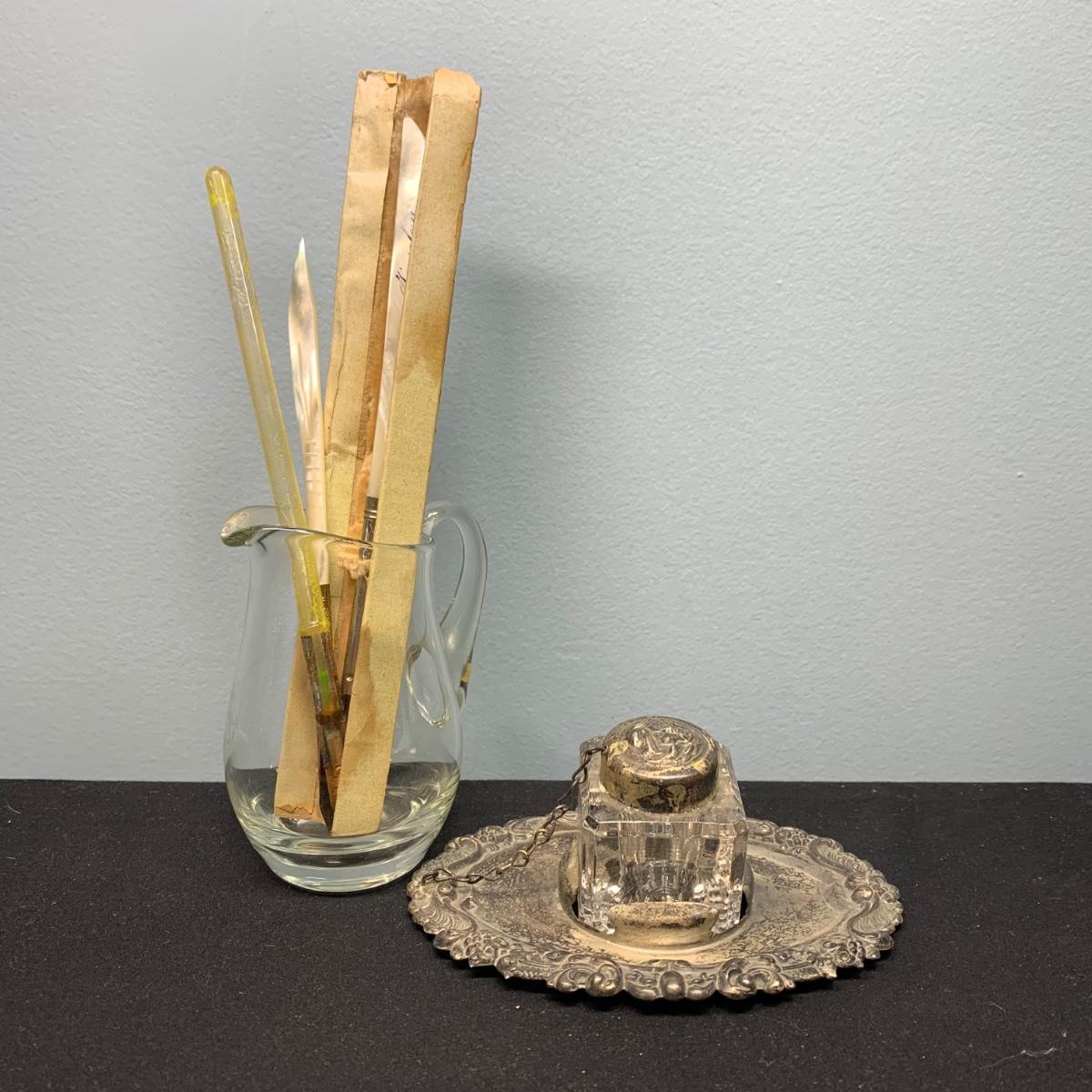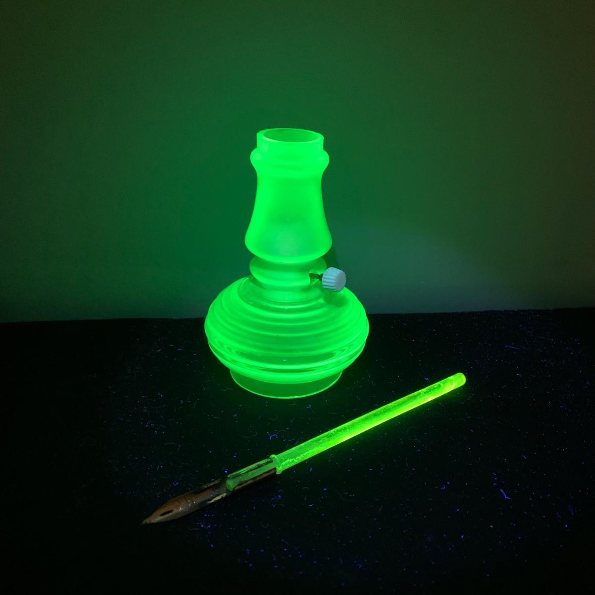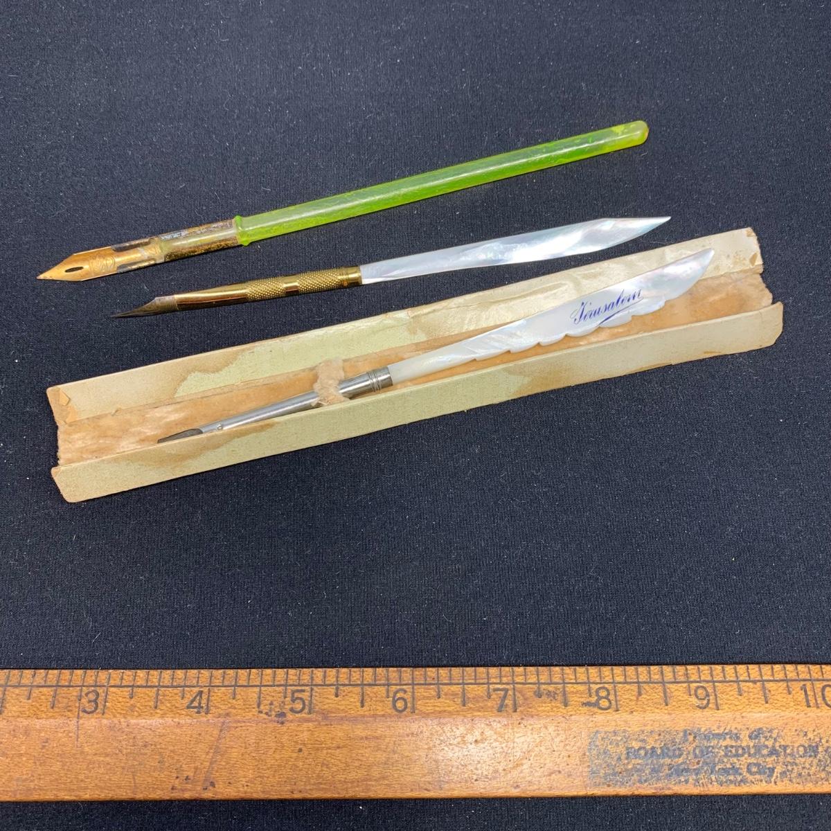 LOT 67: Unique Uranium Glass Light & Calligraphy Pen, Vintage Ladies Gloves, Calligraphy Pens, Glasses & More