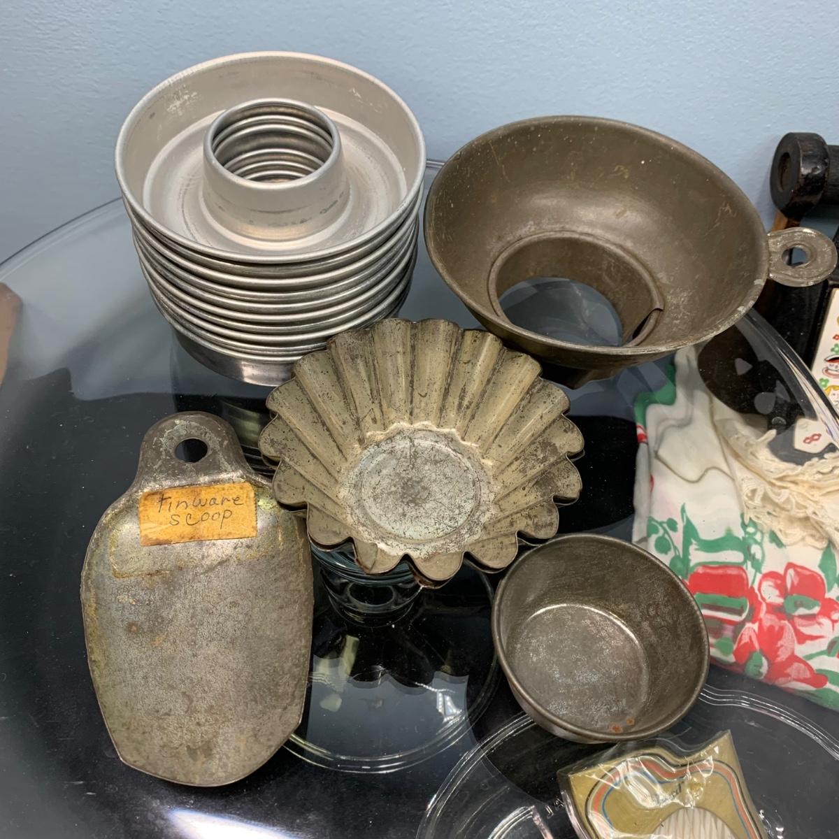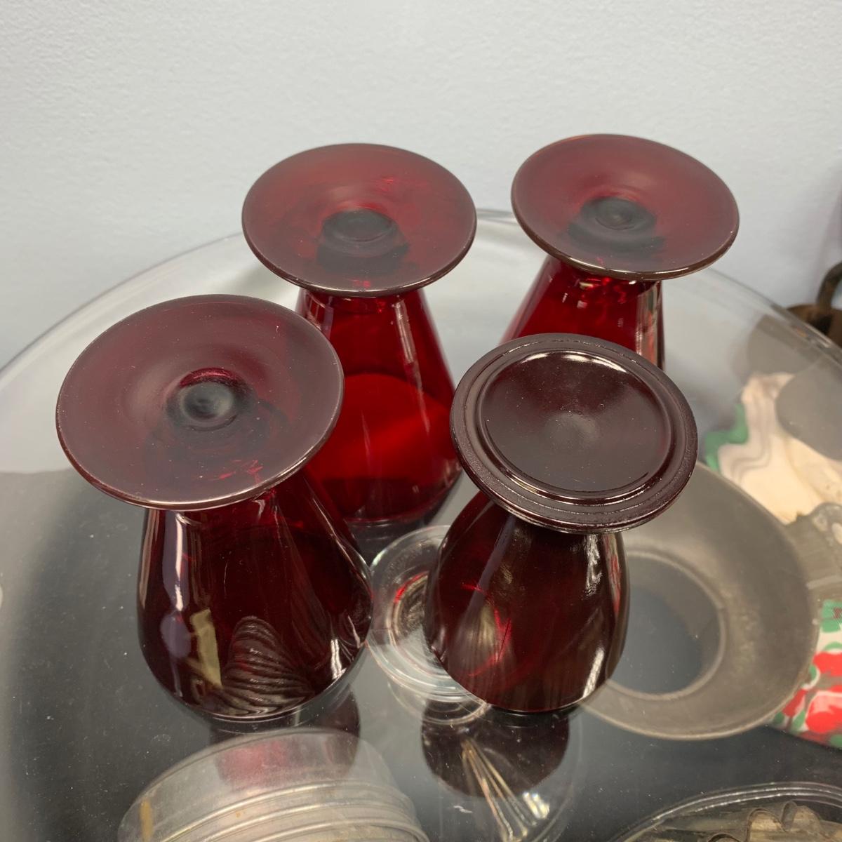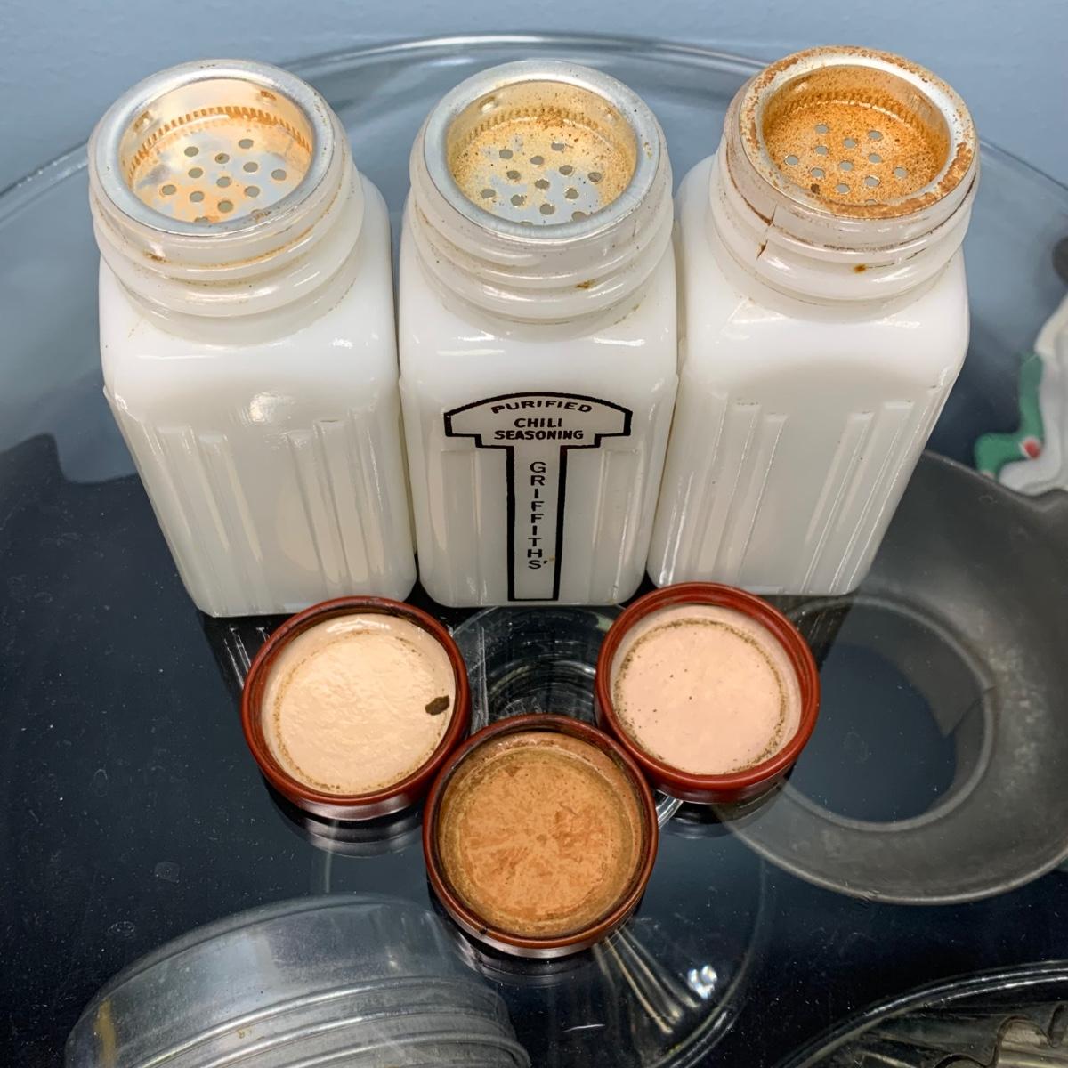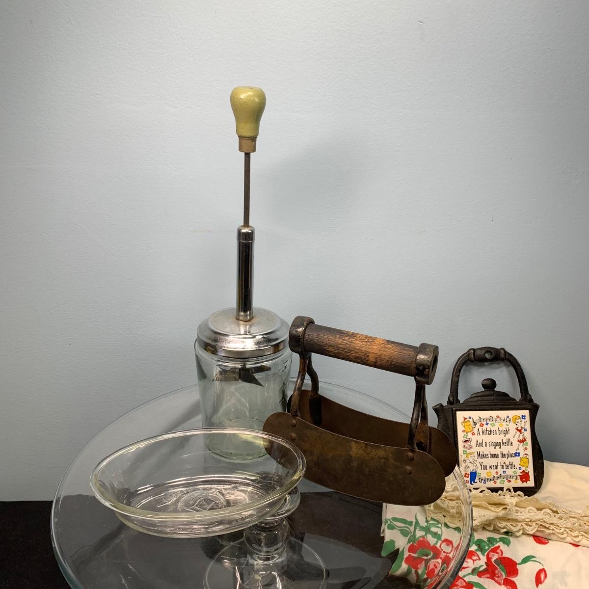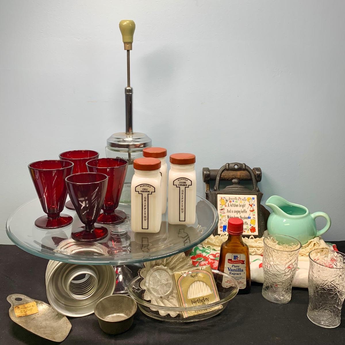 LOT 69: Vintage Ruby Red Glasses, Milk Spice Jars, Vintage Food Chopper, Donut Molds & More