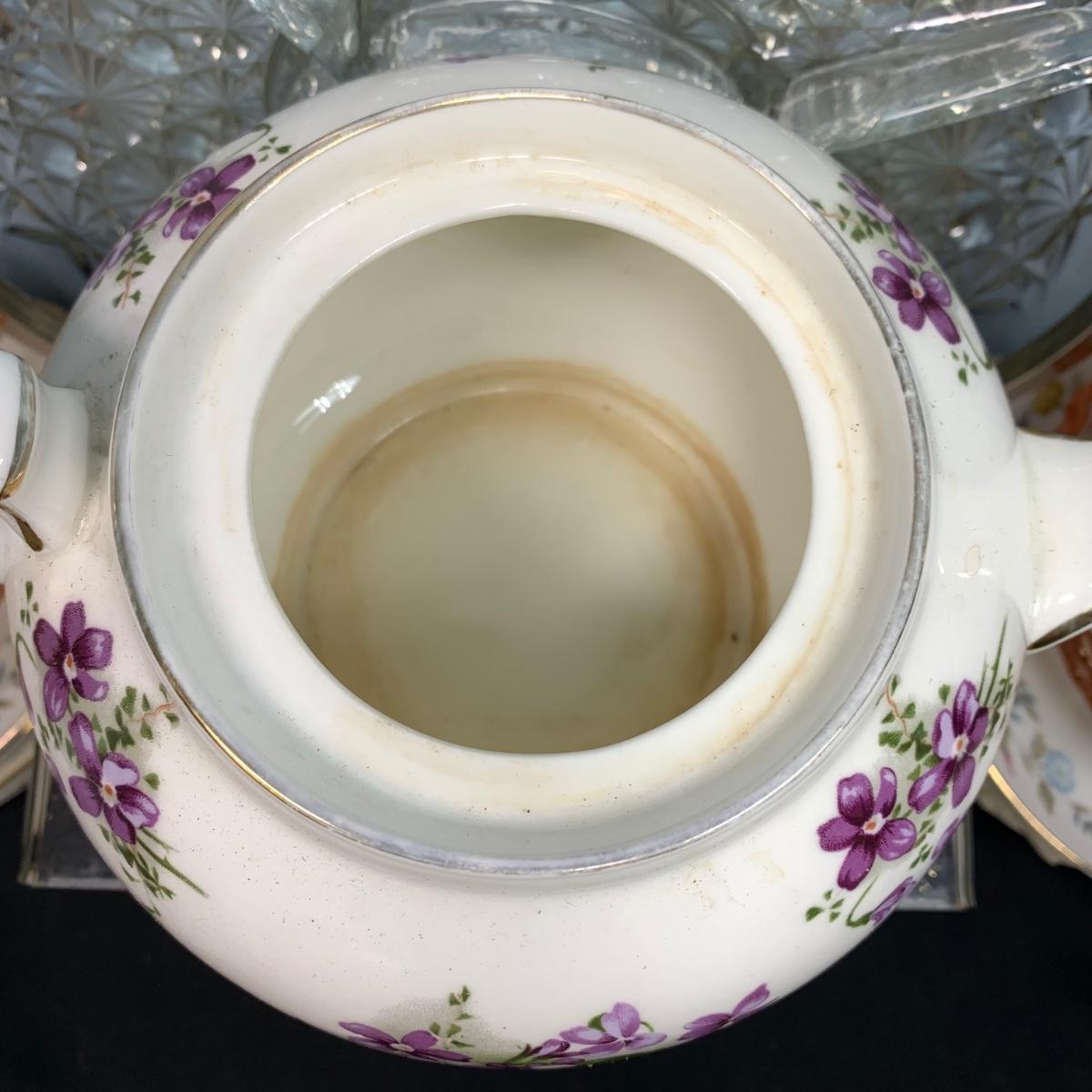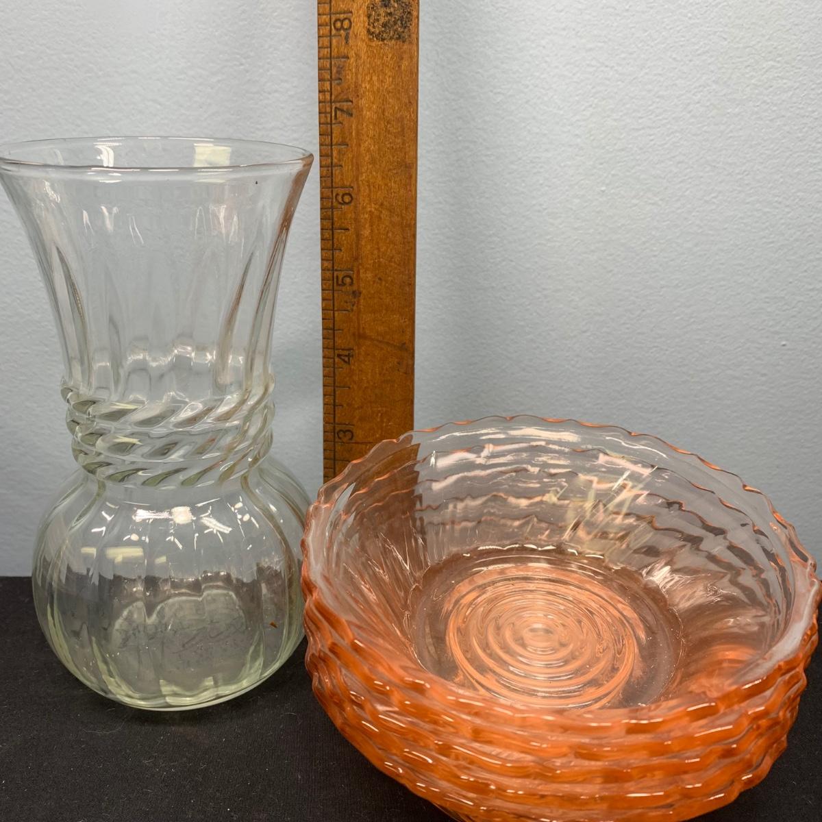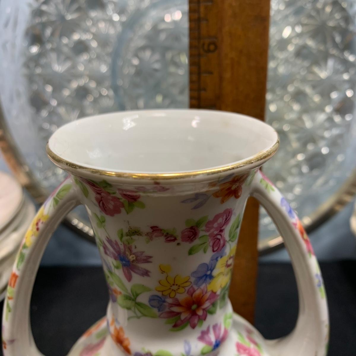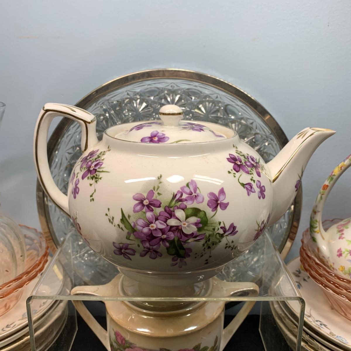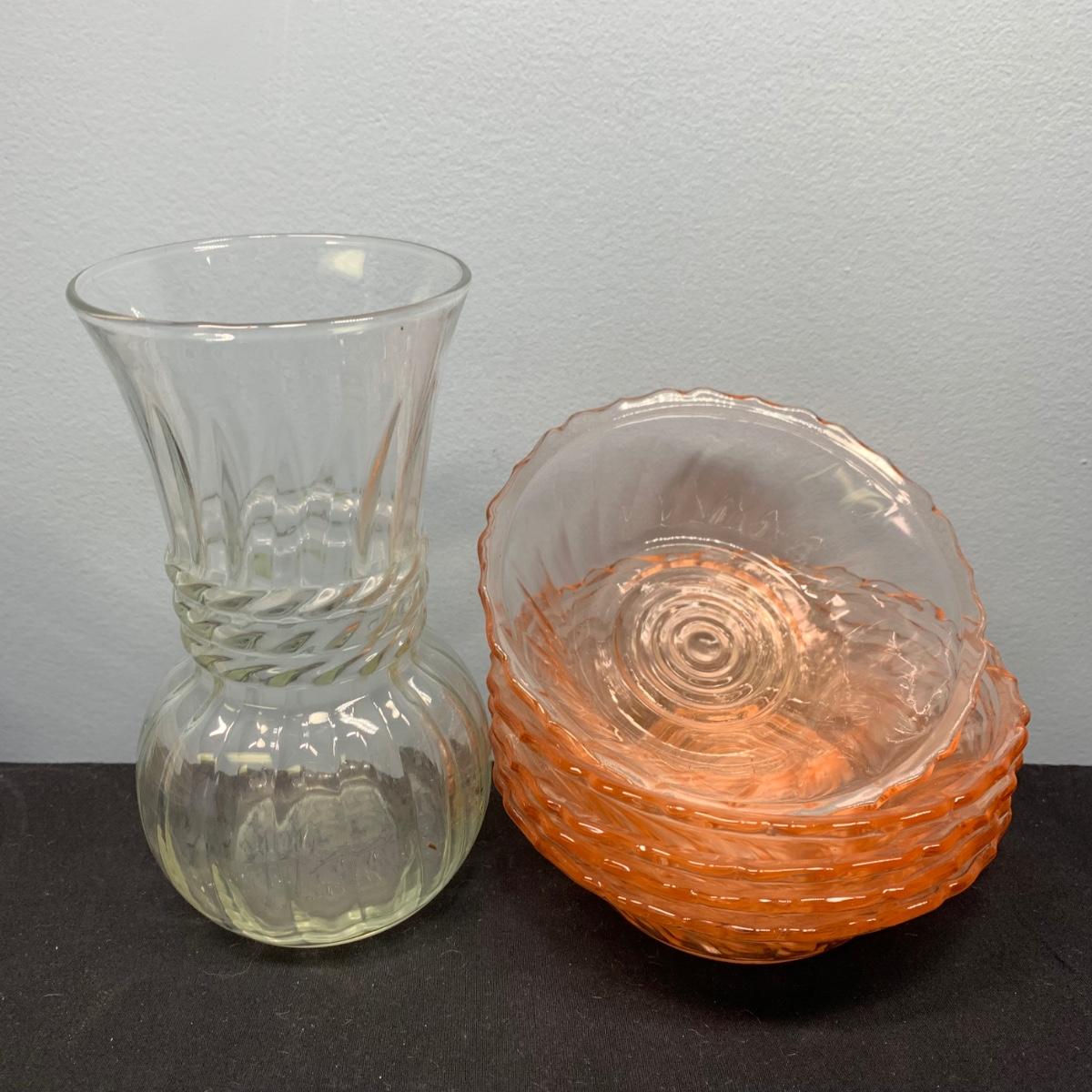 LOT 72: Teapots, Pink Squirl Bowls, Cut Crystal Sugar Bowl w/Creamer, Floral Vases & More