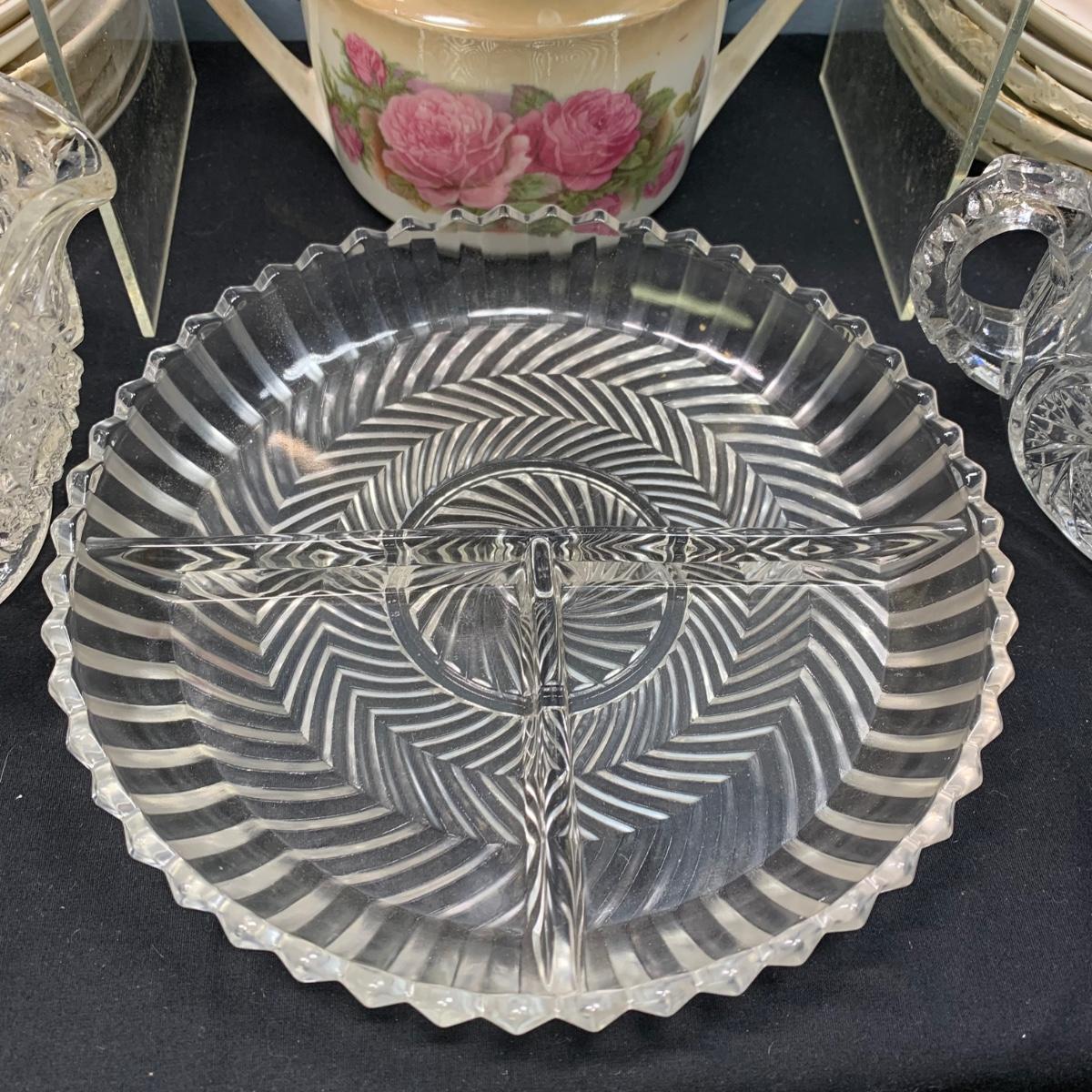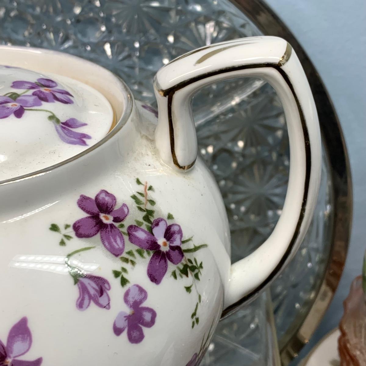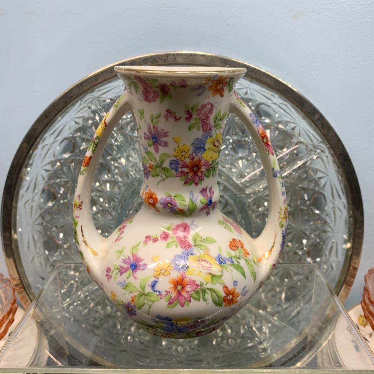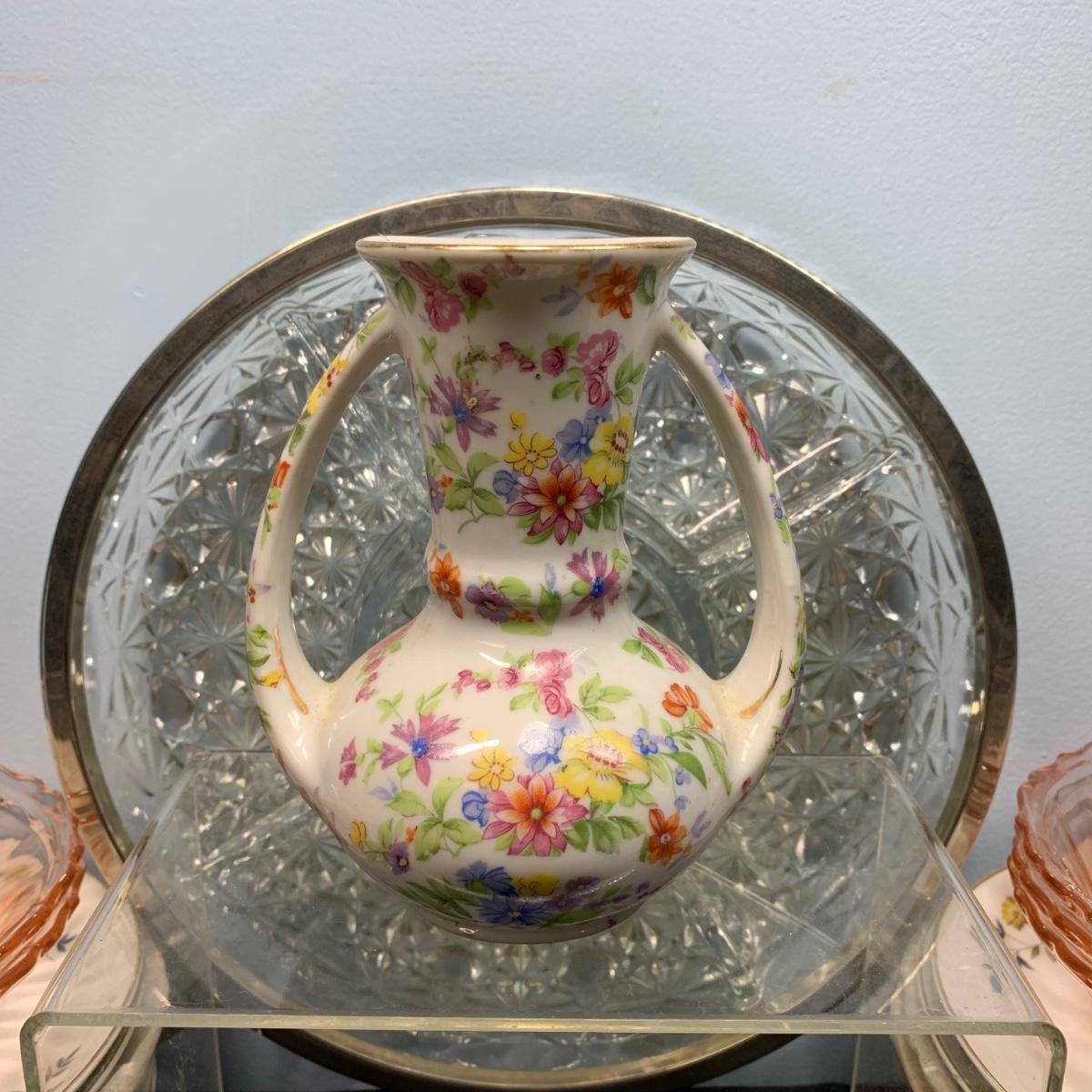 LOT 72: Teapots, Pink Squirl Bowls, Cut Crystal Sugar Bowl w/Creamer, Floral Vases & More