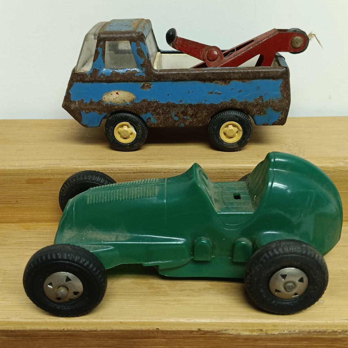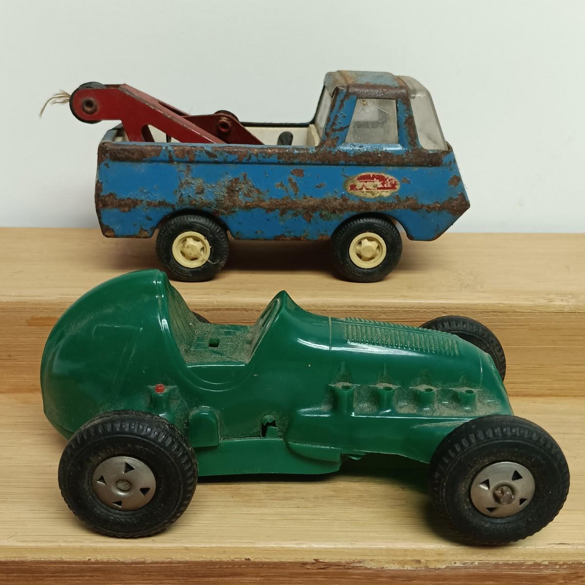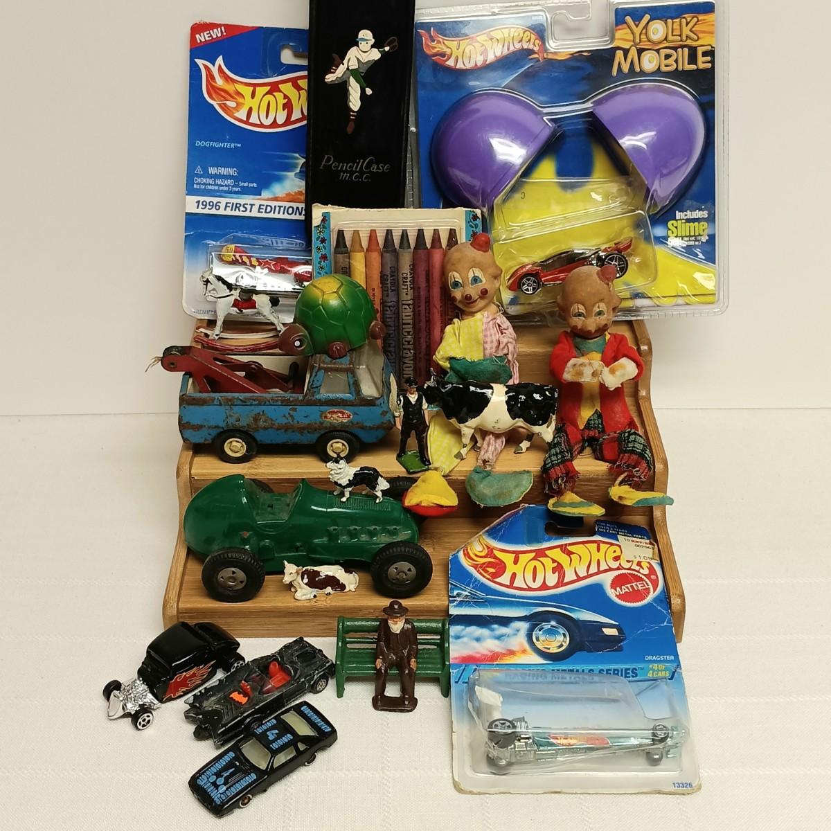 LOT 87B: Vintage Toy Collection- Tonka Tow Truck, Marx Sprint Race Car, Bendable Felt Clowns & More