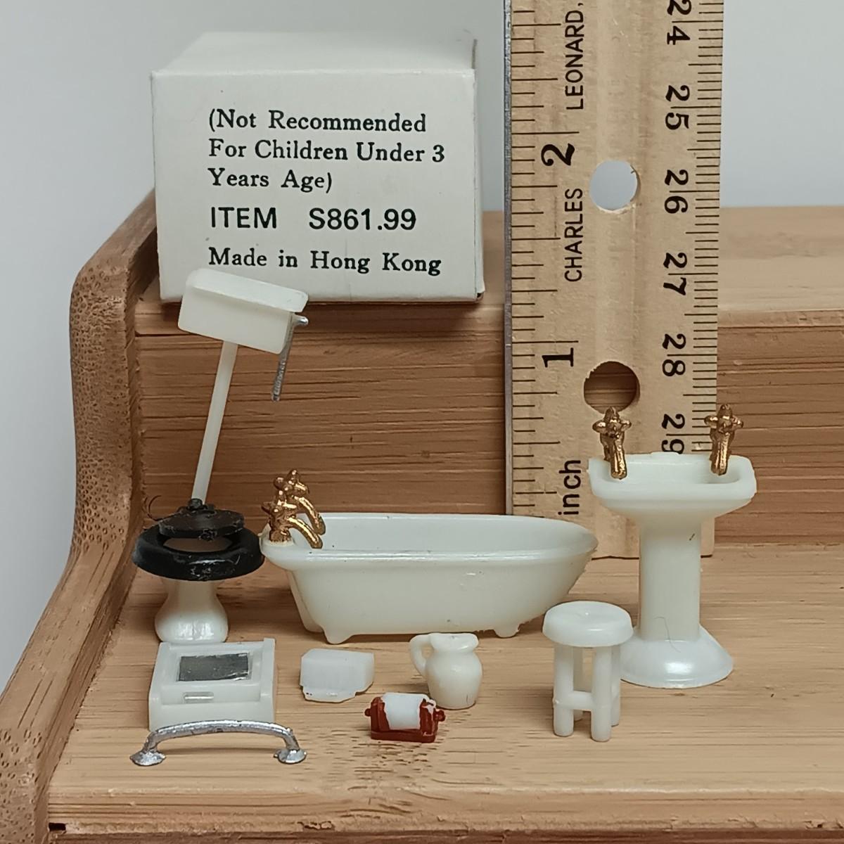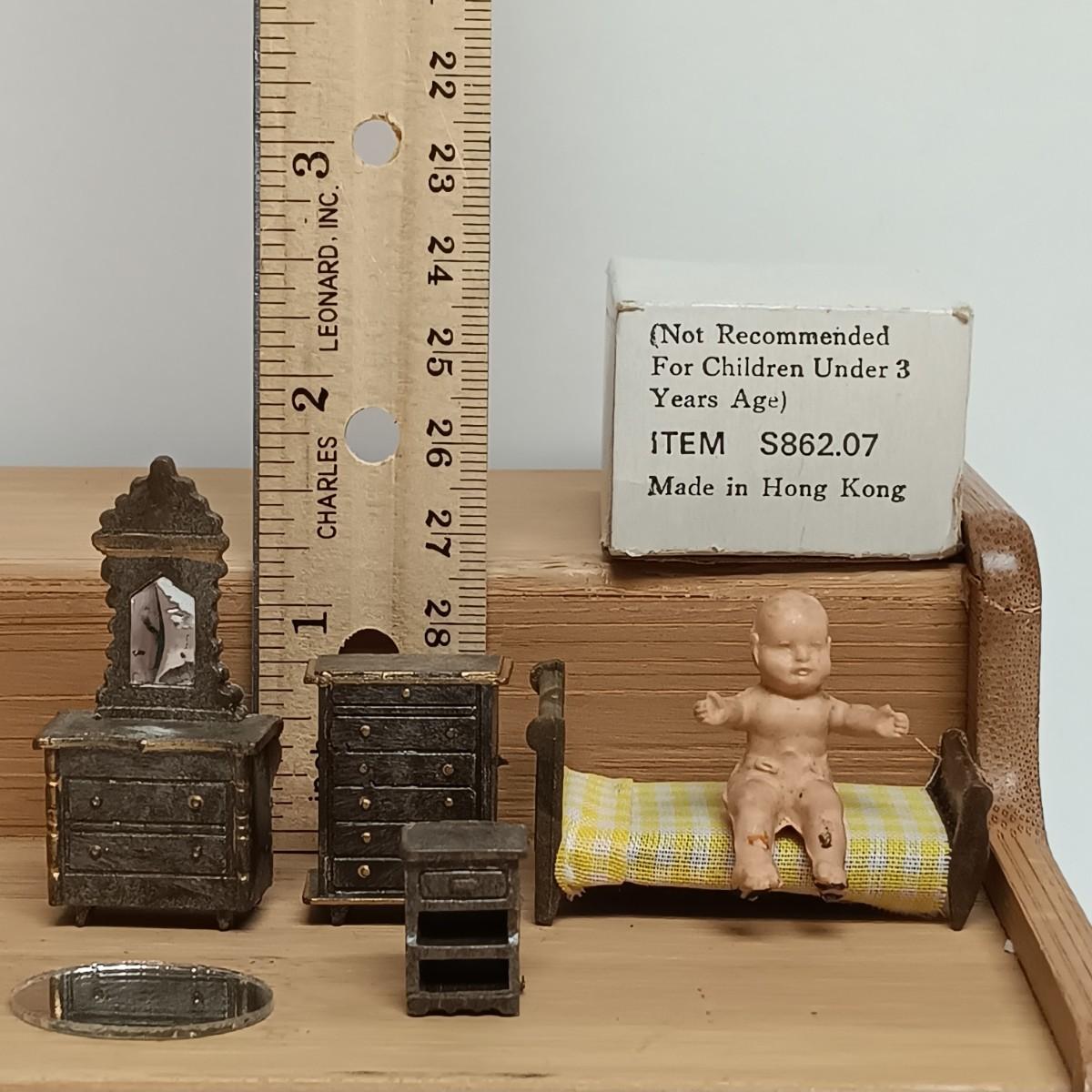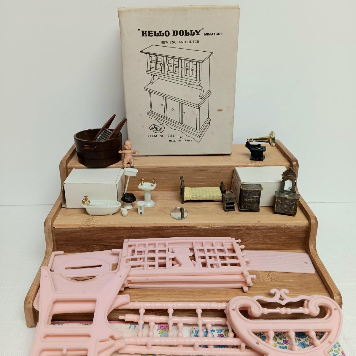 LOT 88B: Miniature Doll Furniture- Hello Dolly Hutch, 2 Sets of 1"-2" Furniture and More
