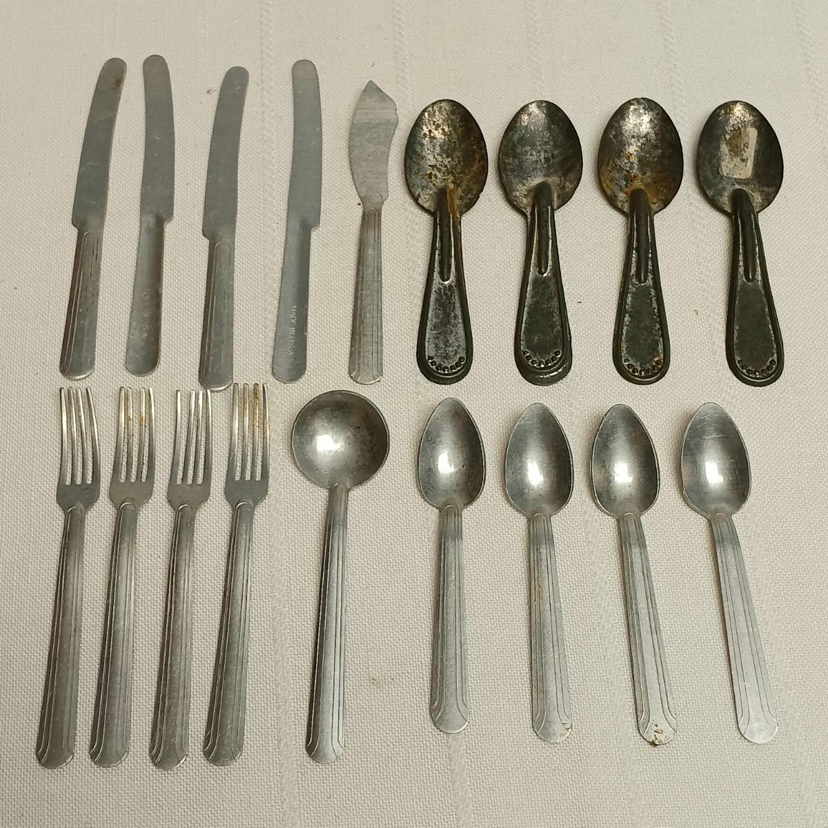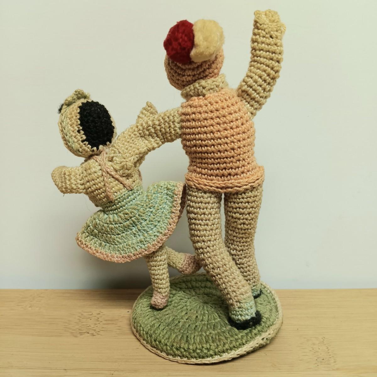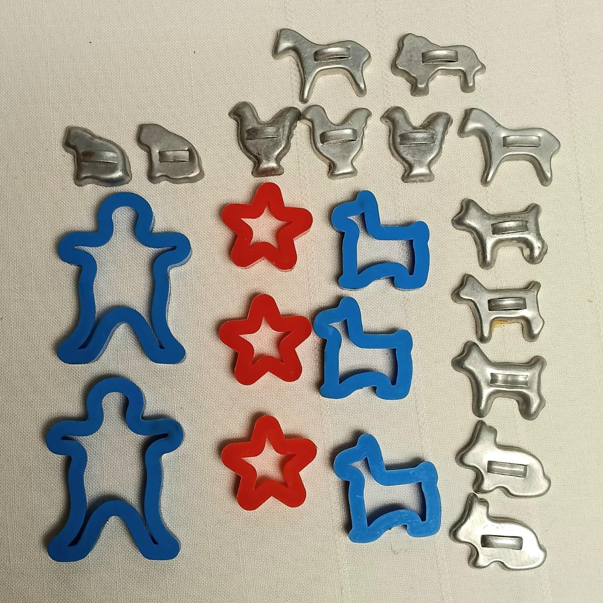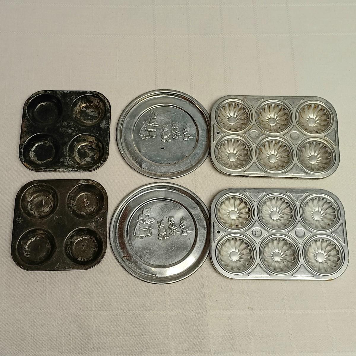 LOT 89B: Vintage Toy Collection- Raggedy Ann Squeaky Toy, Child-Sizw Cookie Cutters and Kitchenware, Crocheted Dolls & More