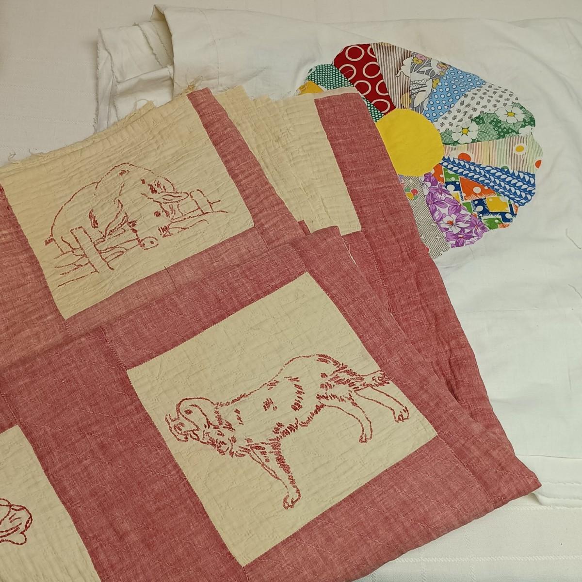 Please note: Some of the fabric has had pieces cut from it. As this is a vintage lot, some of the fabric has small stains and discoloration.