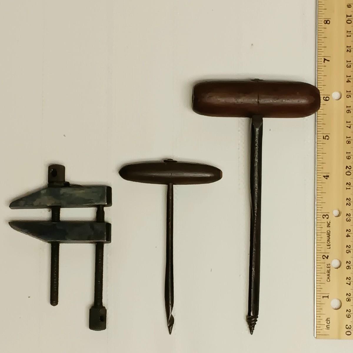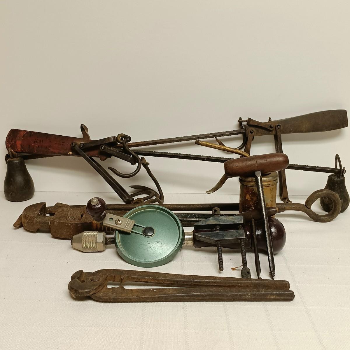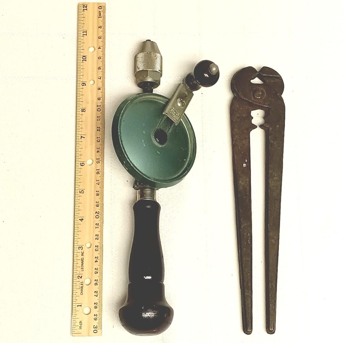 LOT 96B: Vintage Tool Collection- 2 Roman Scales, Craftsman Hand Drill, Wood Handled Cork Screws & More