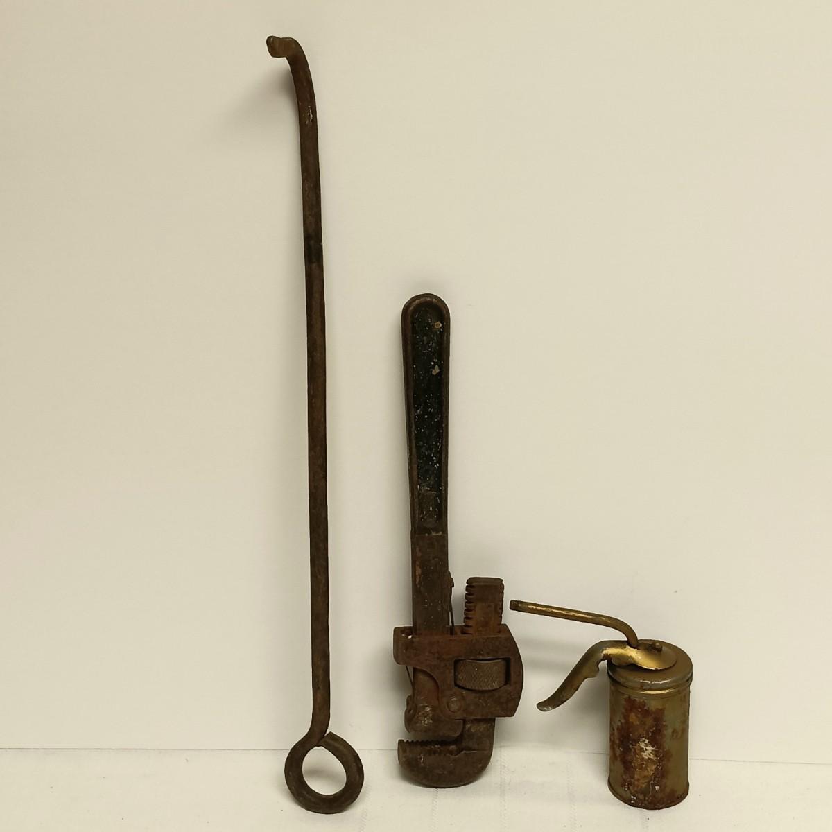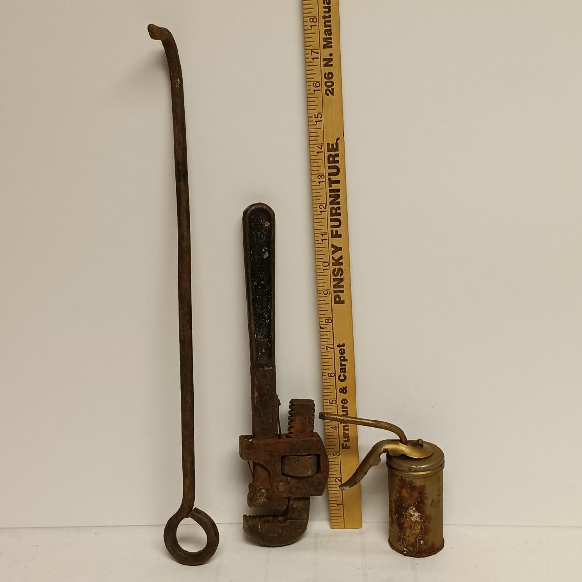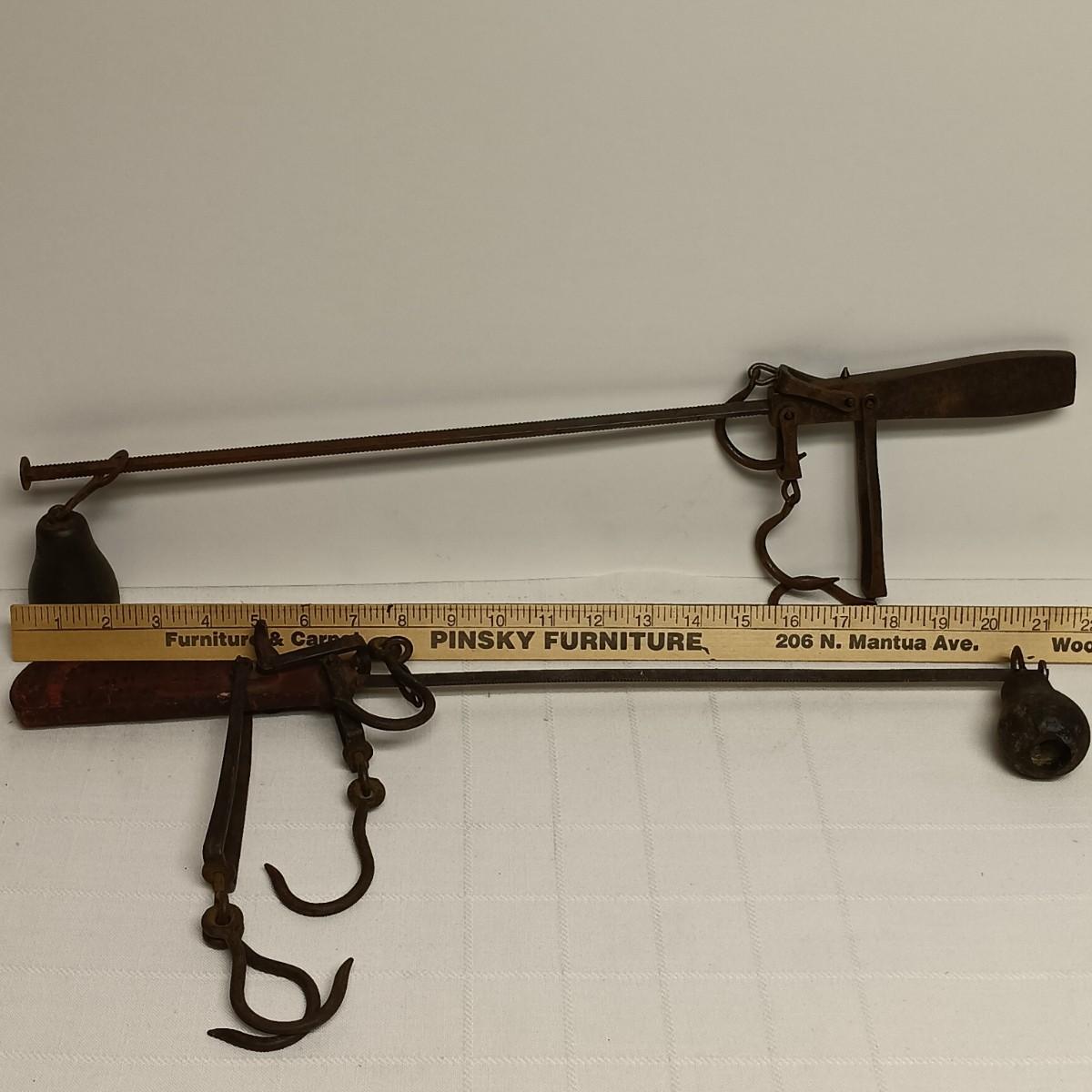LOT 96B: Vintage Tool Collection- 2 Roman Scales, Craftsman Hand Drill, Wood Handled Cork Screws & More
