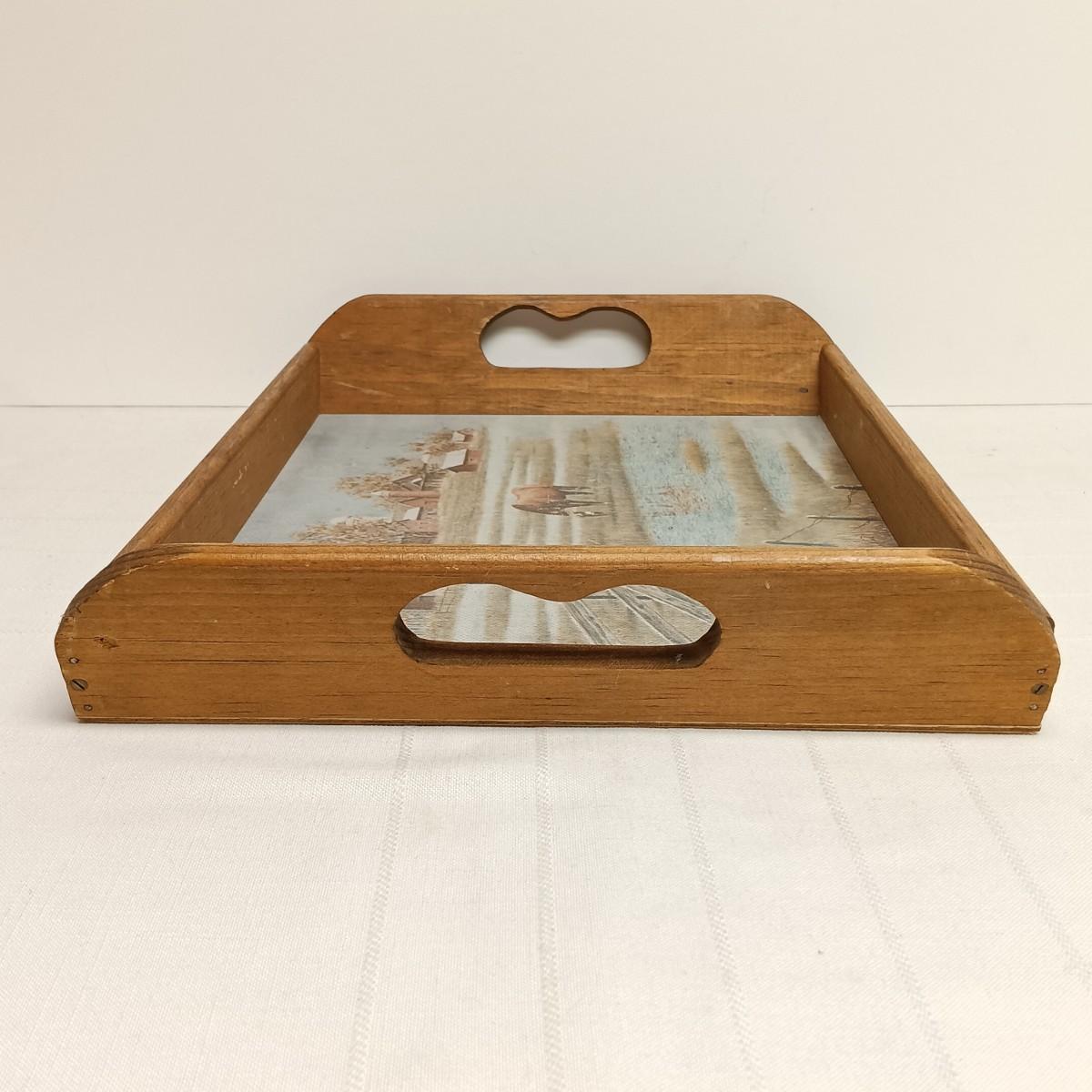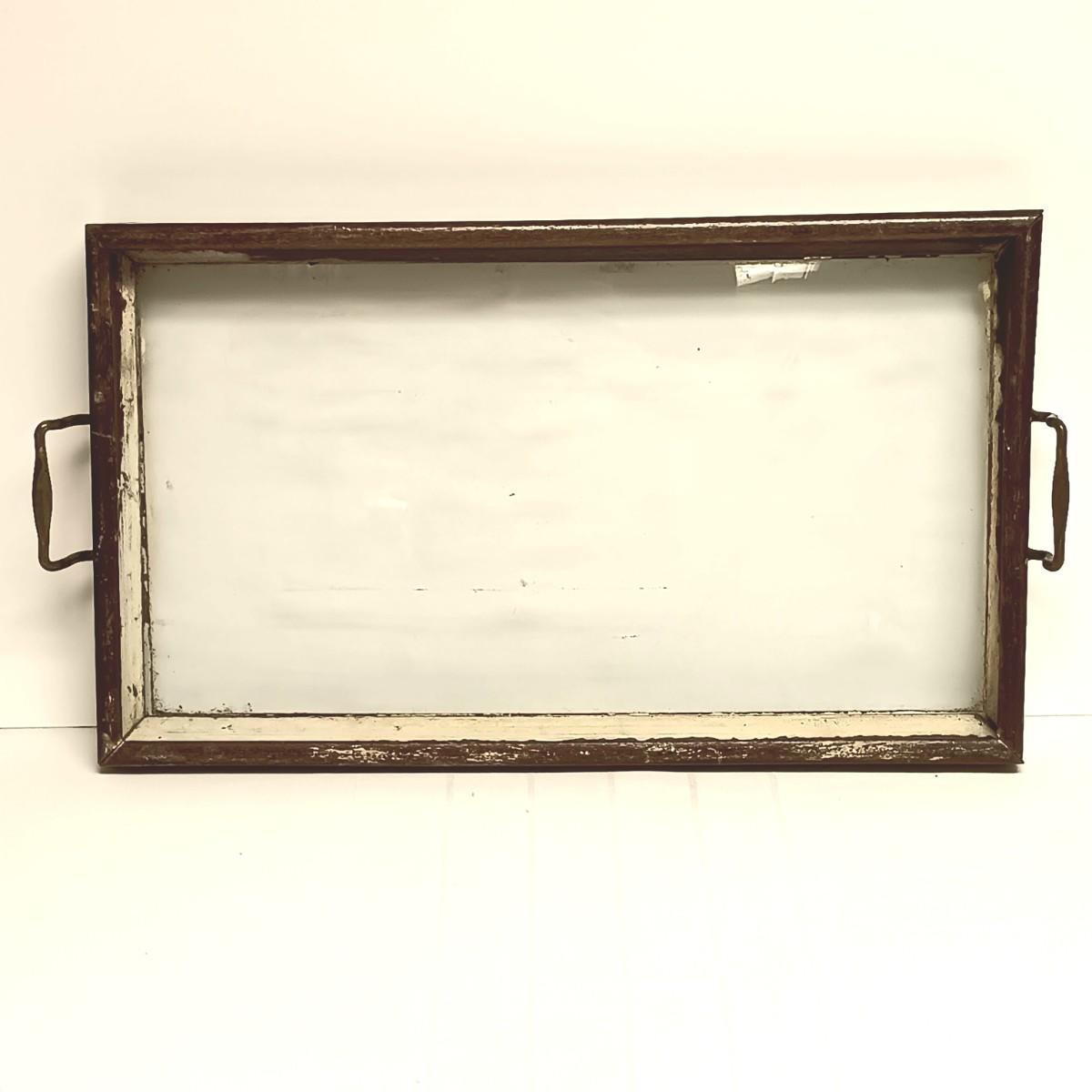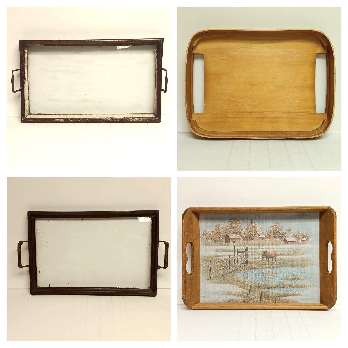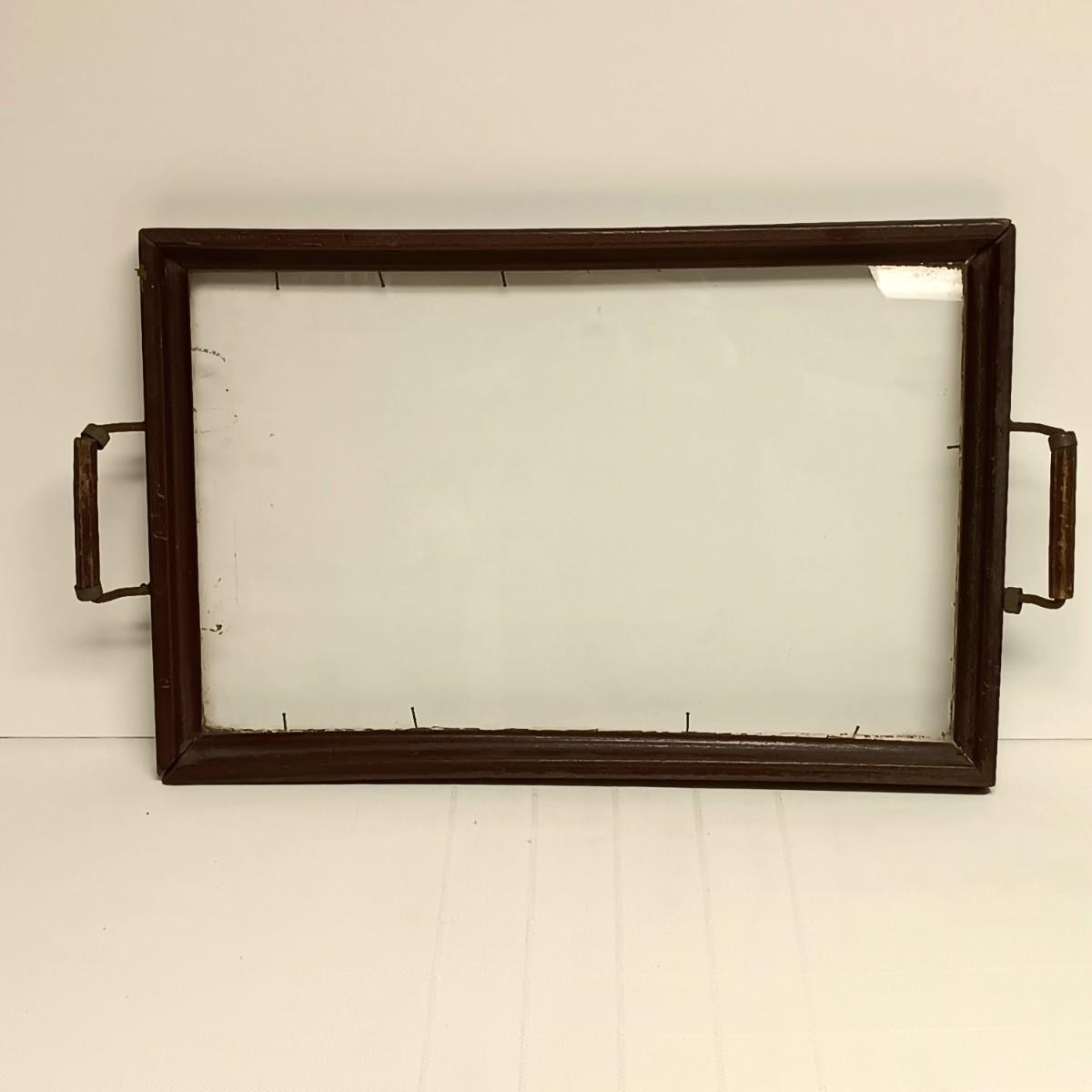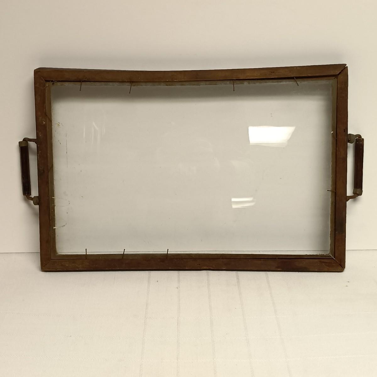 LOT 103B: Set of 2 Antique Glass Bottom Trays with 2 Wood Trays