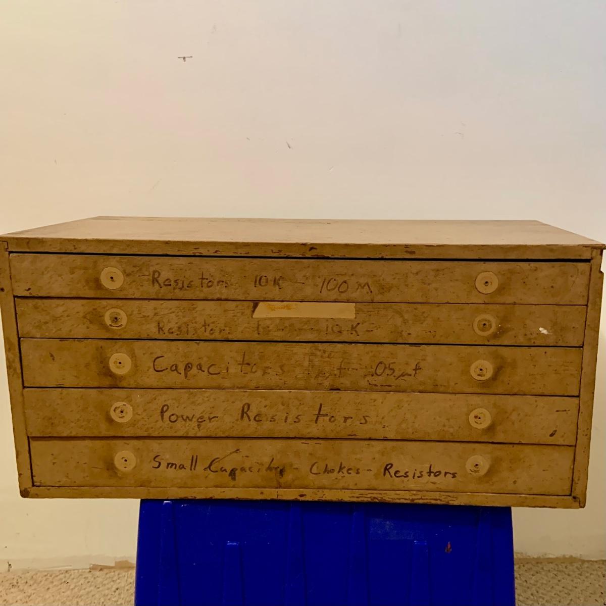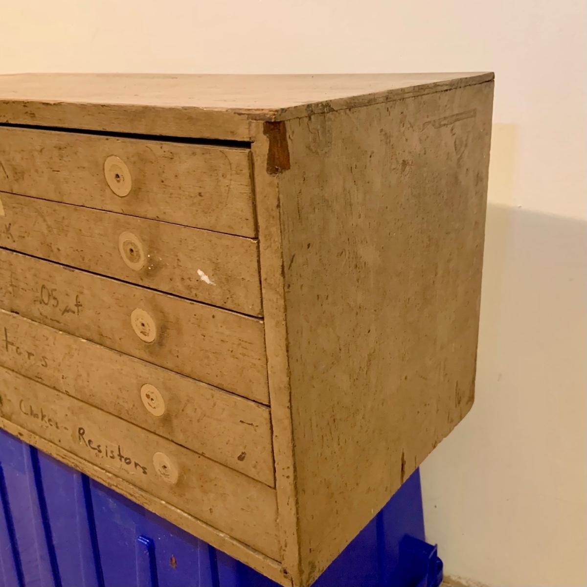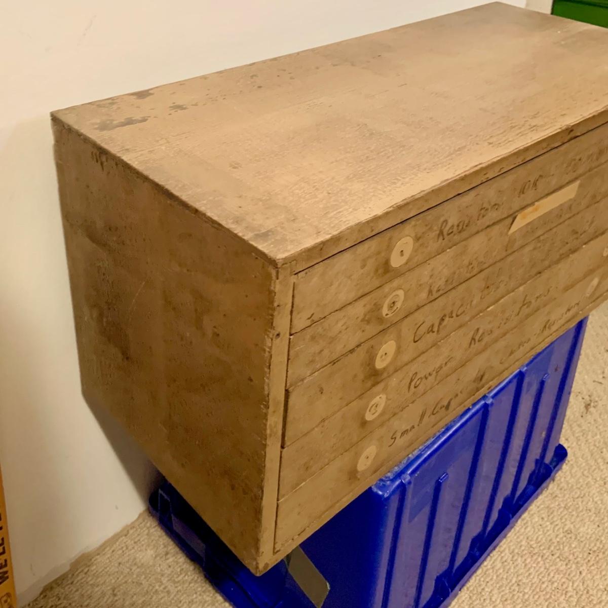 LOT:111: Wood 5 Drawer Tool Crate with Divided Pull-out Drawers (Knobs Missing)