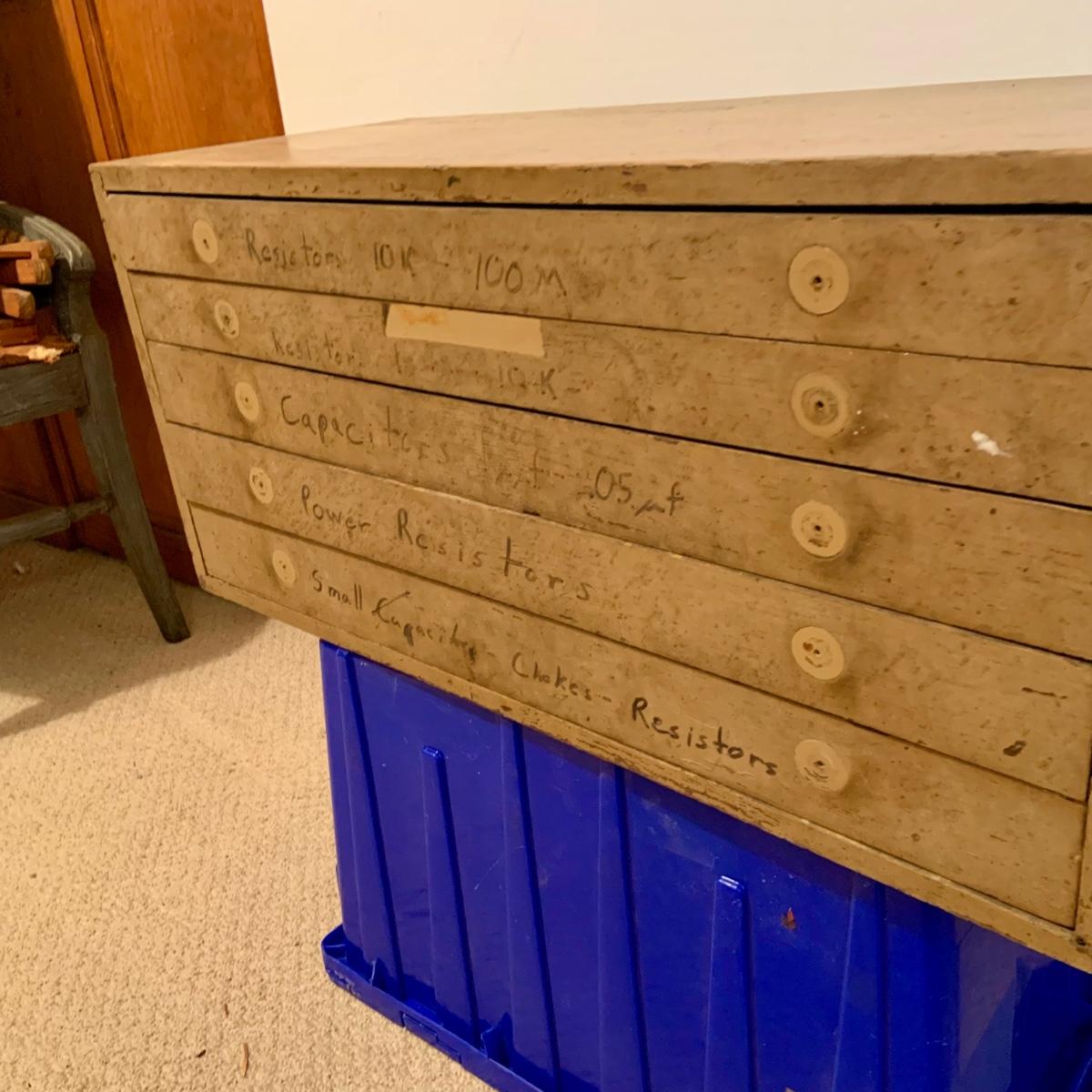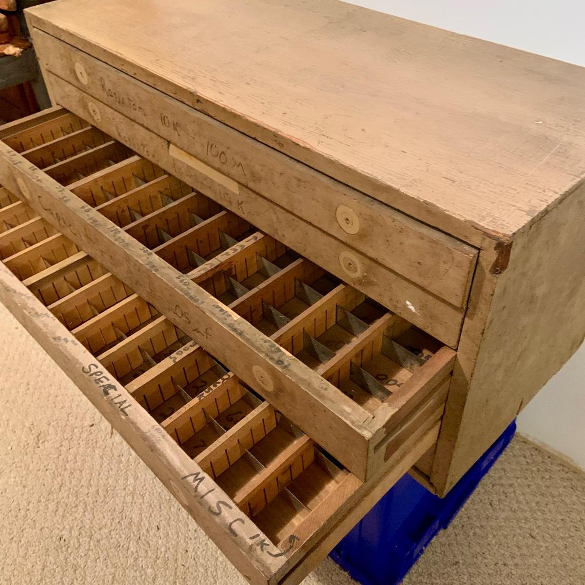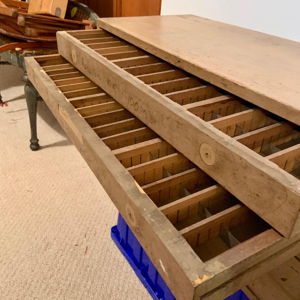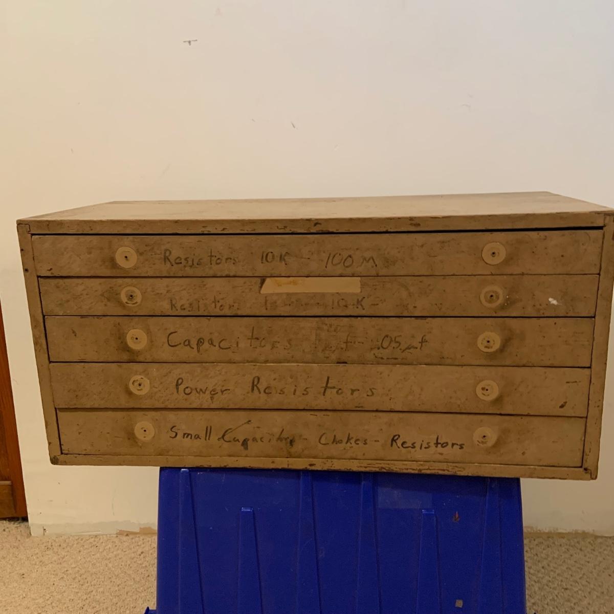 LOT:111: Wood 5 Drawer Tool Crate with Divided Pull-out Drawers (Knobs Missing)