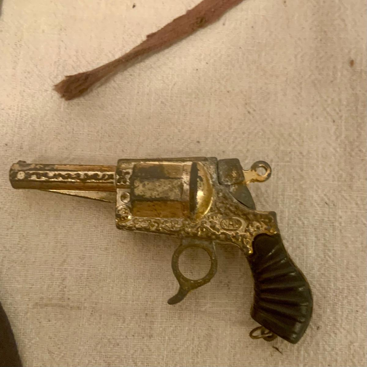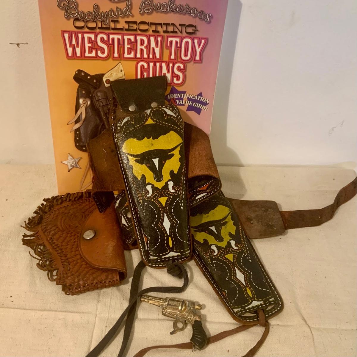 LOT:123: Vintage Cowboy Gun Holsters and Mini Toy Gun Wester Toy Guide