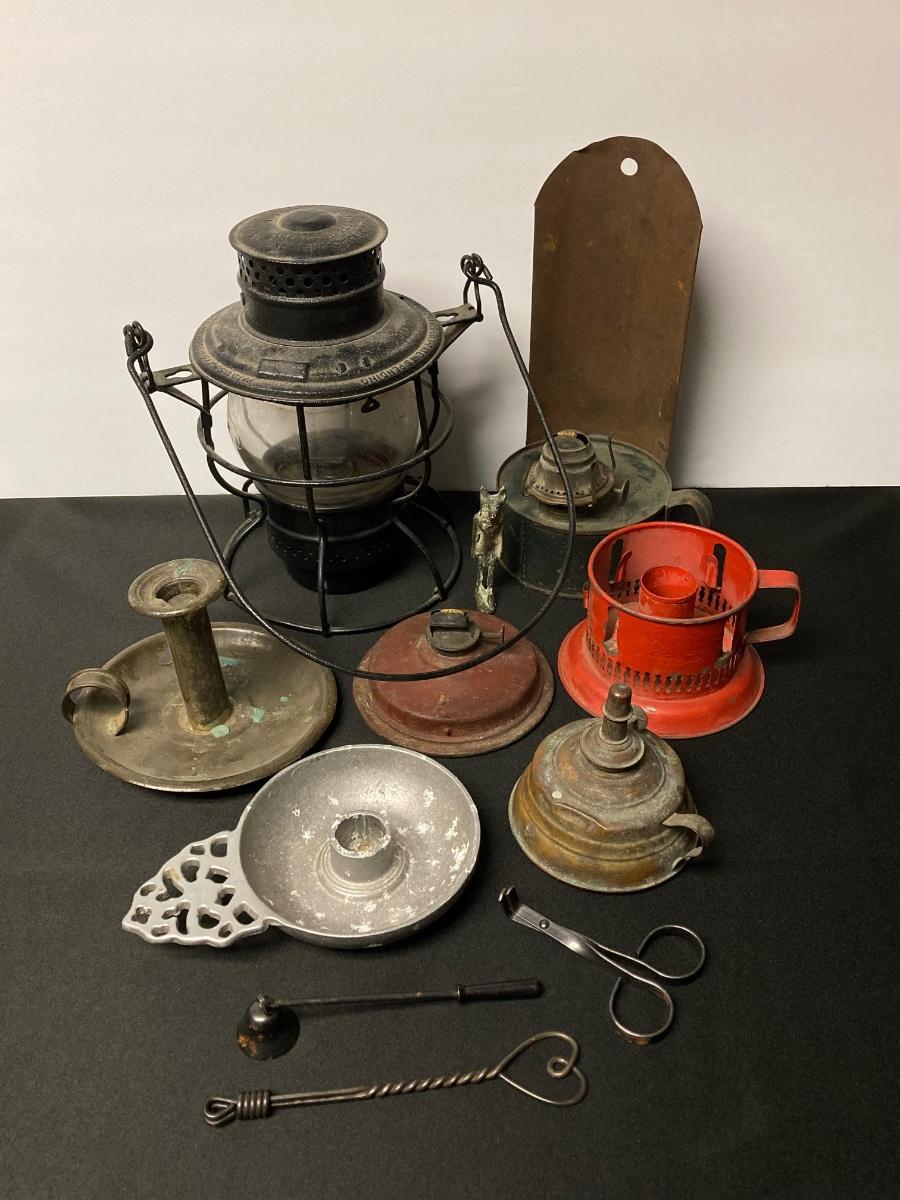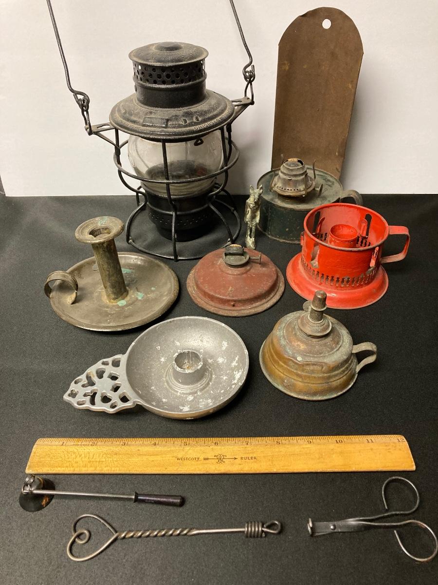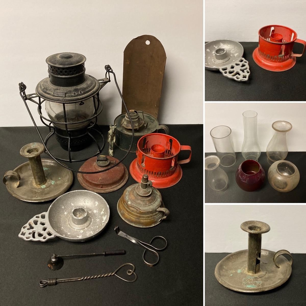 LOT 136: Antique / Vintage Lanterns, Candle Holders, Pharaoh/Wolf Figurine and More