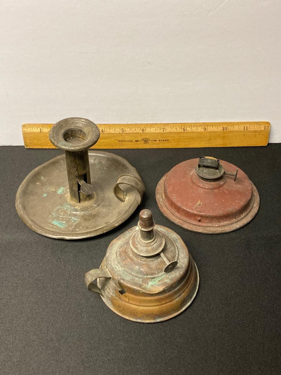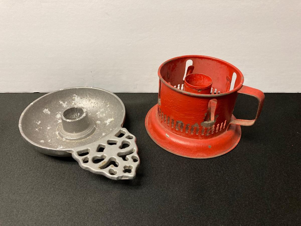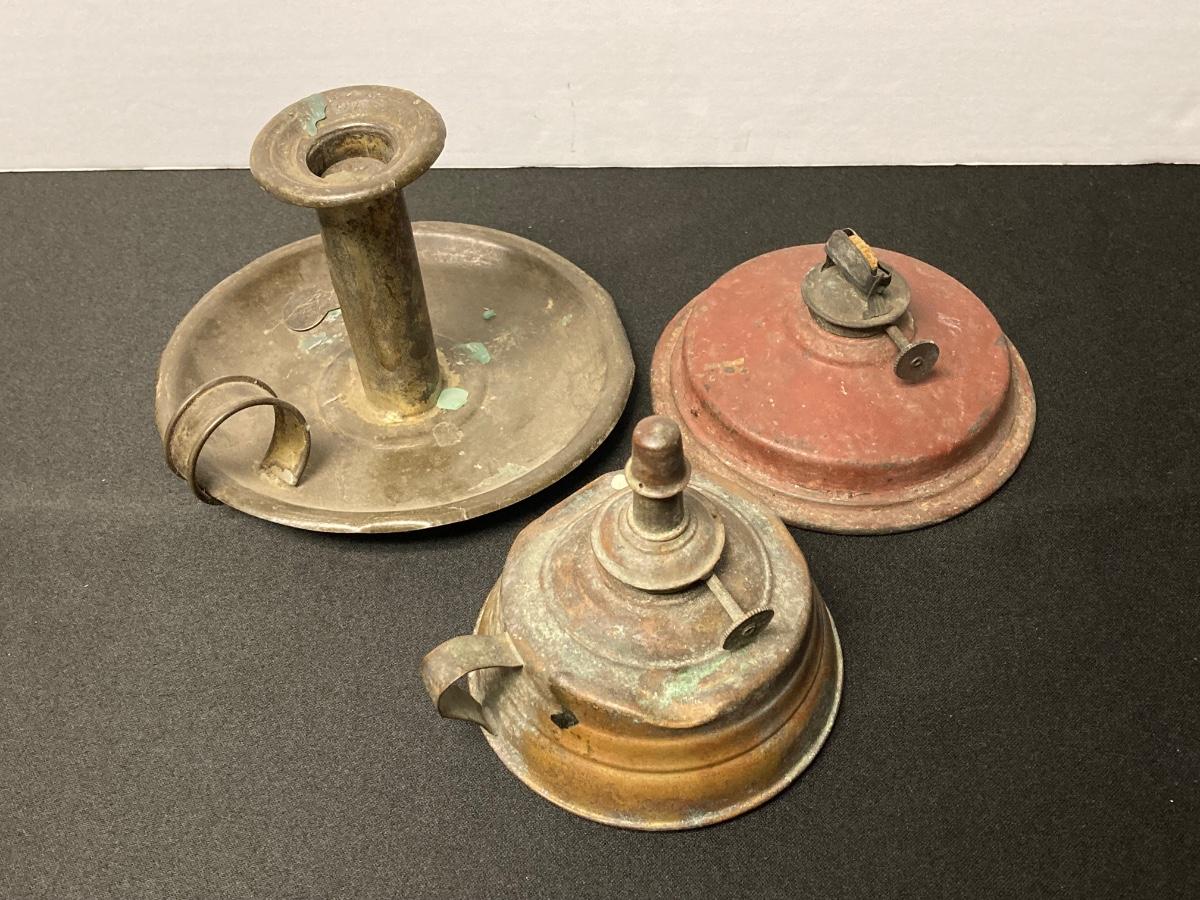 LOT 136: Antique / Vintage Lanterns, Candle Holders, Pharaoh/Wolf Figurine and More