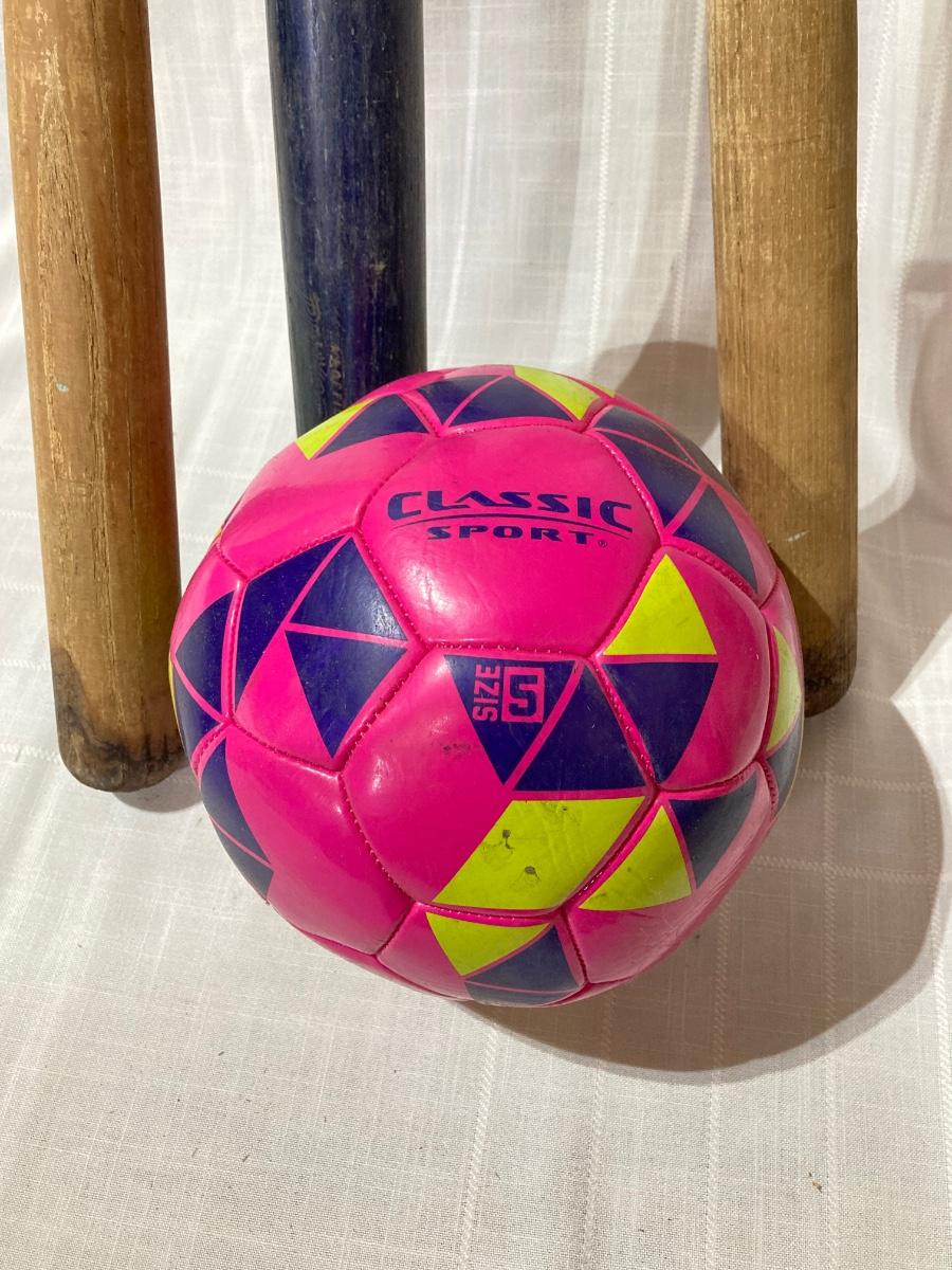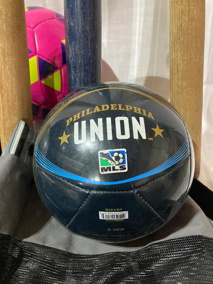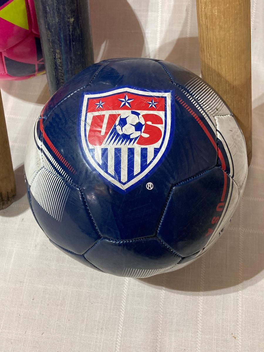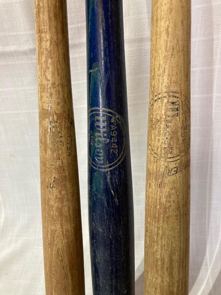 LOT 144G: Vintage Wooden Wilson Baseball Bats with Heavy Duty Bag of Soccer Balls