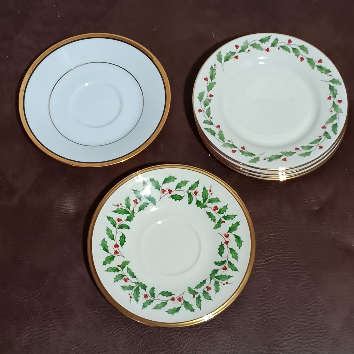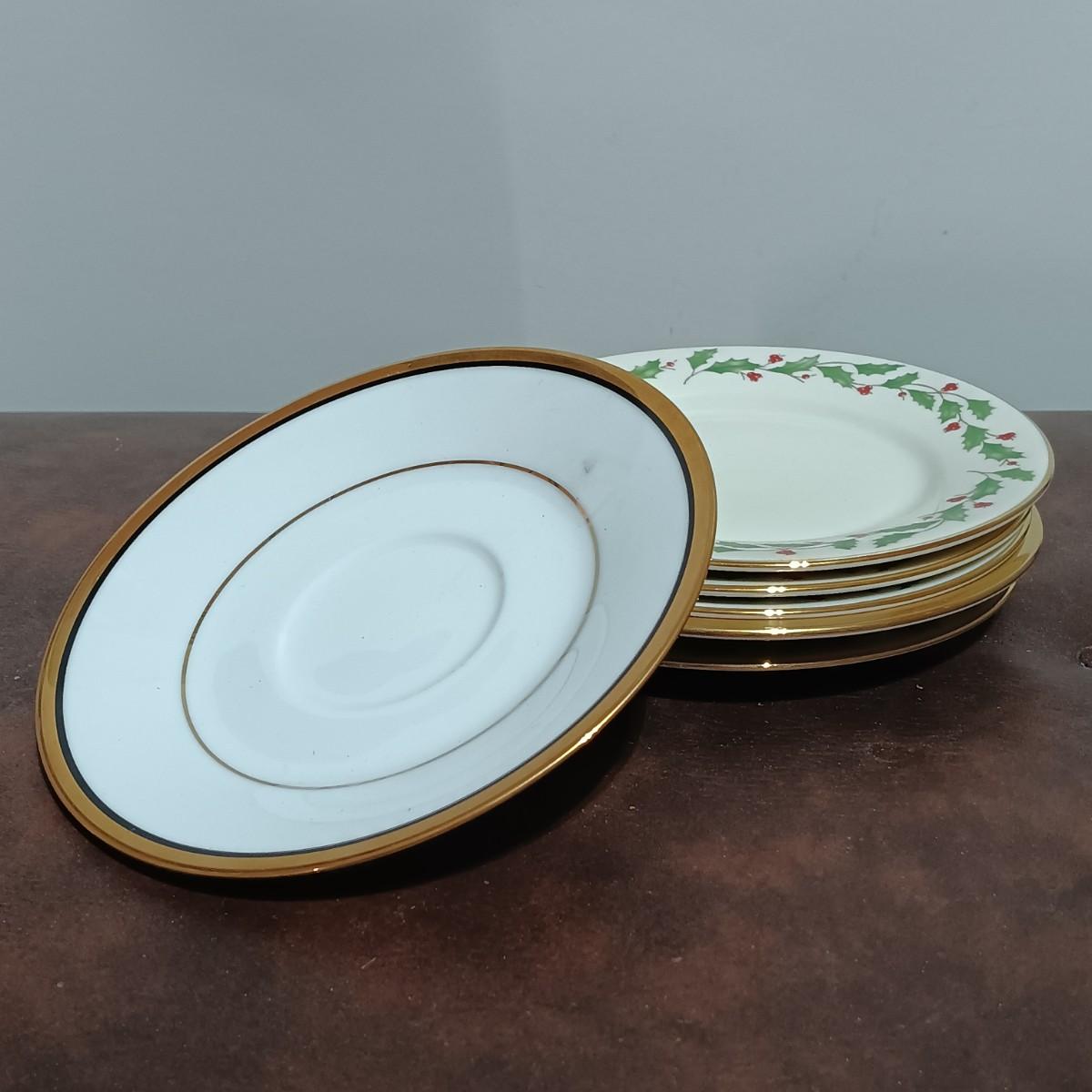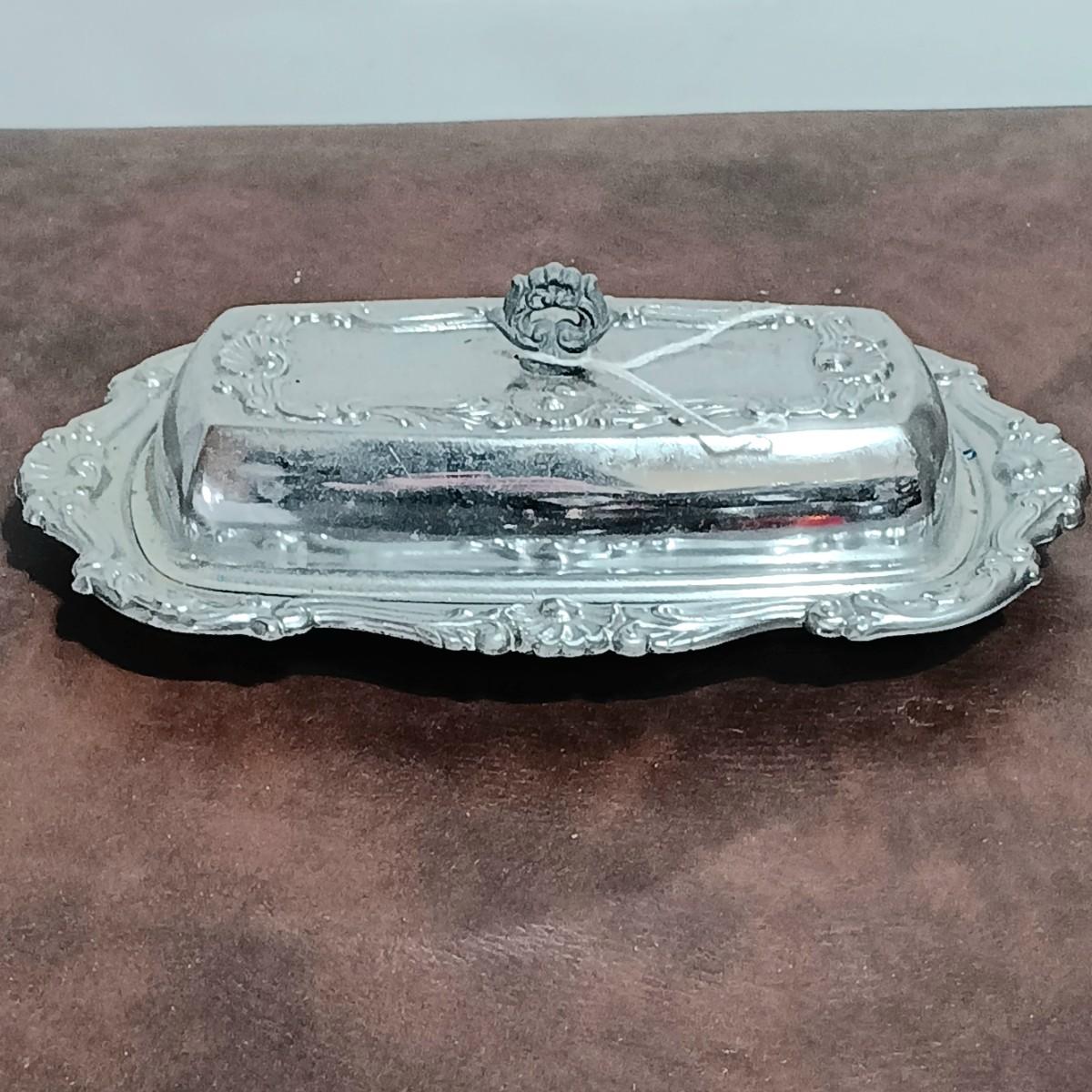 LOT 167G: Pewter and Metal Butter Dishes with Noritake and Lenox Plates and a Crystal Vase