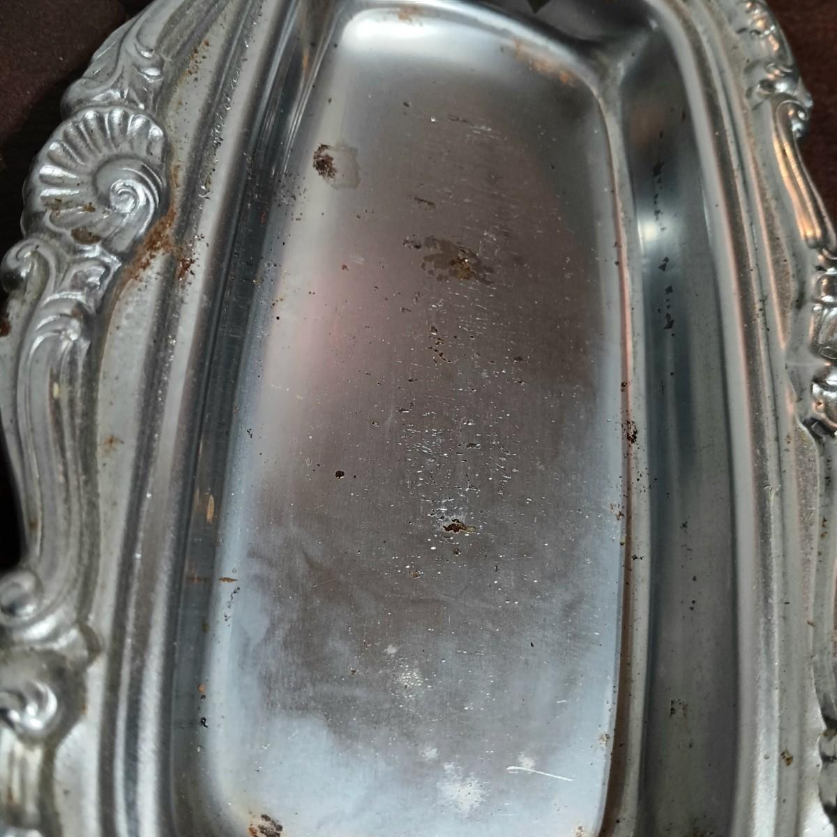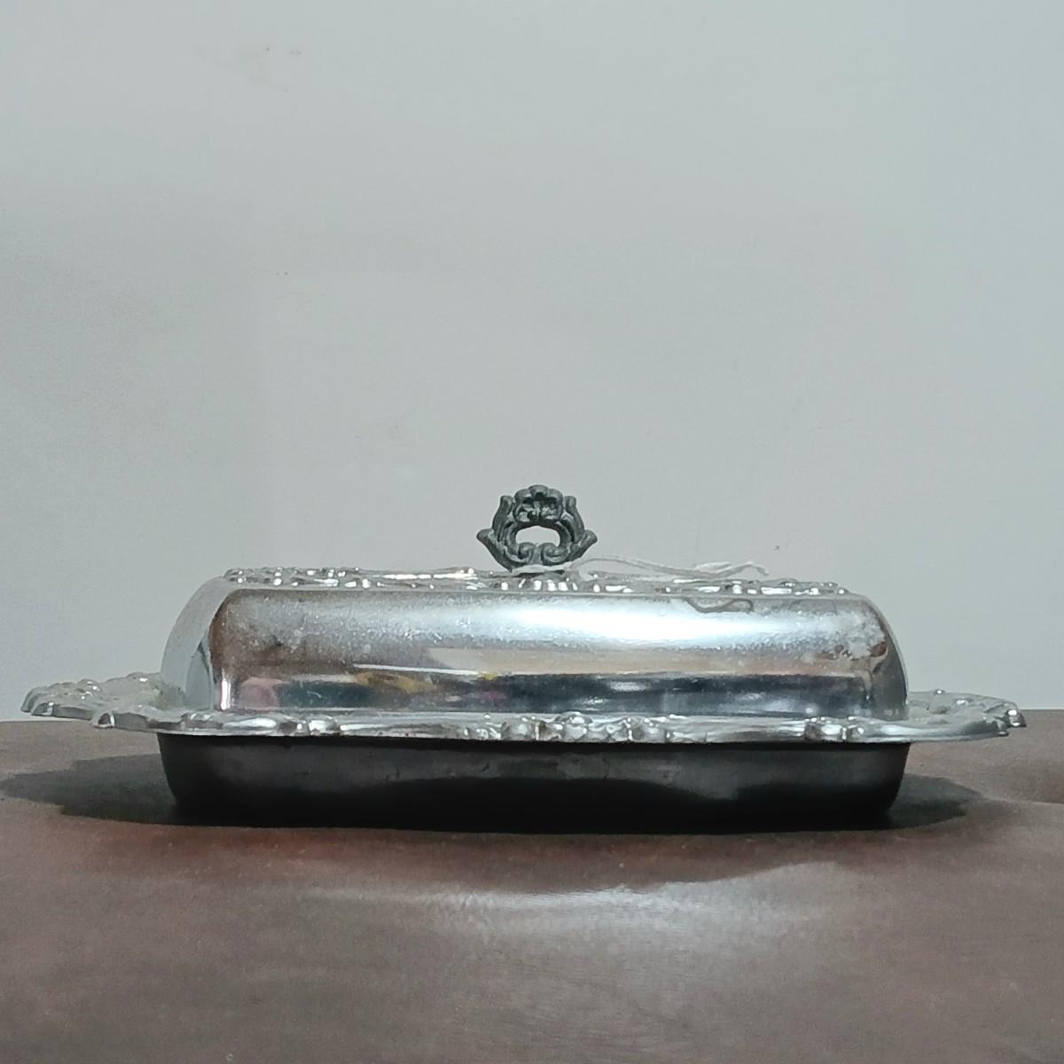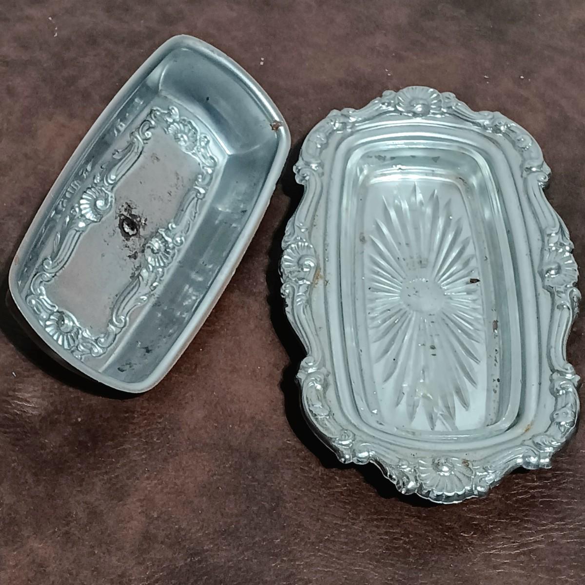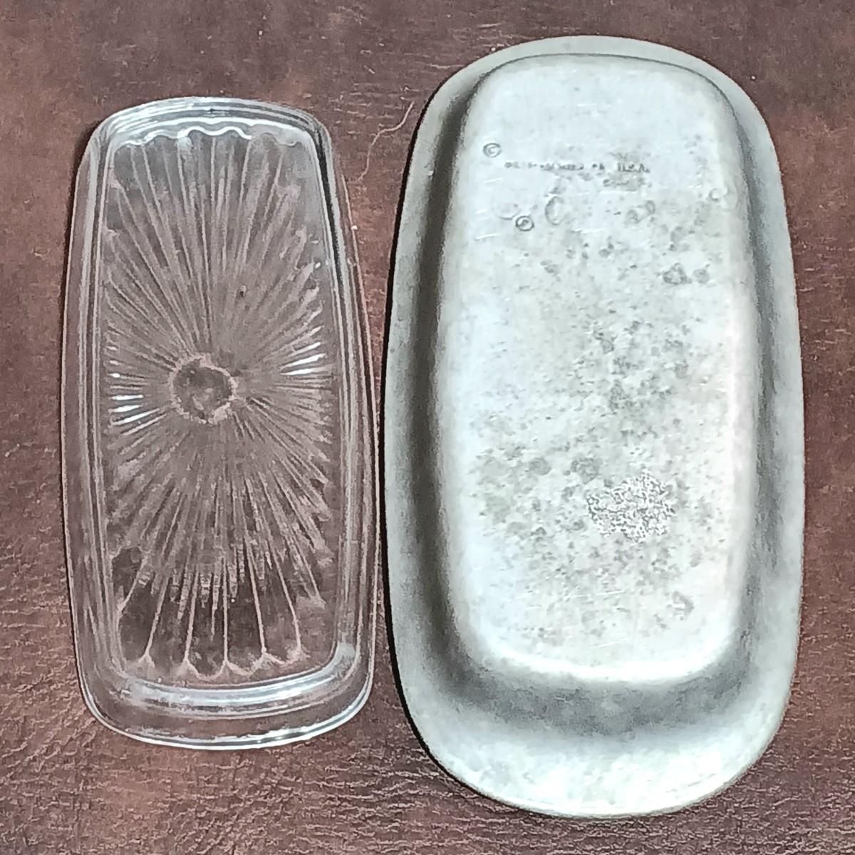 LOT 167G: Pewter and Metal Butter Dishes with Noritake and Lenox Plates and a Crystal Vase