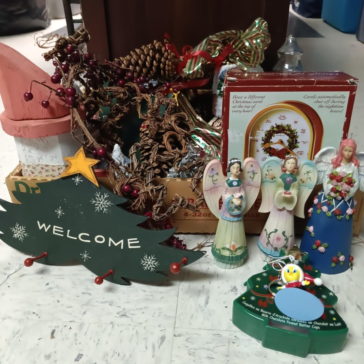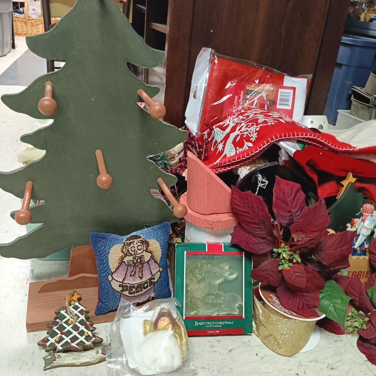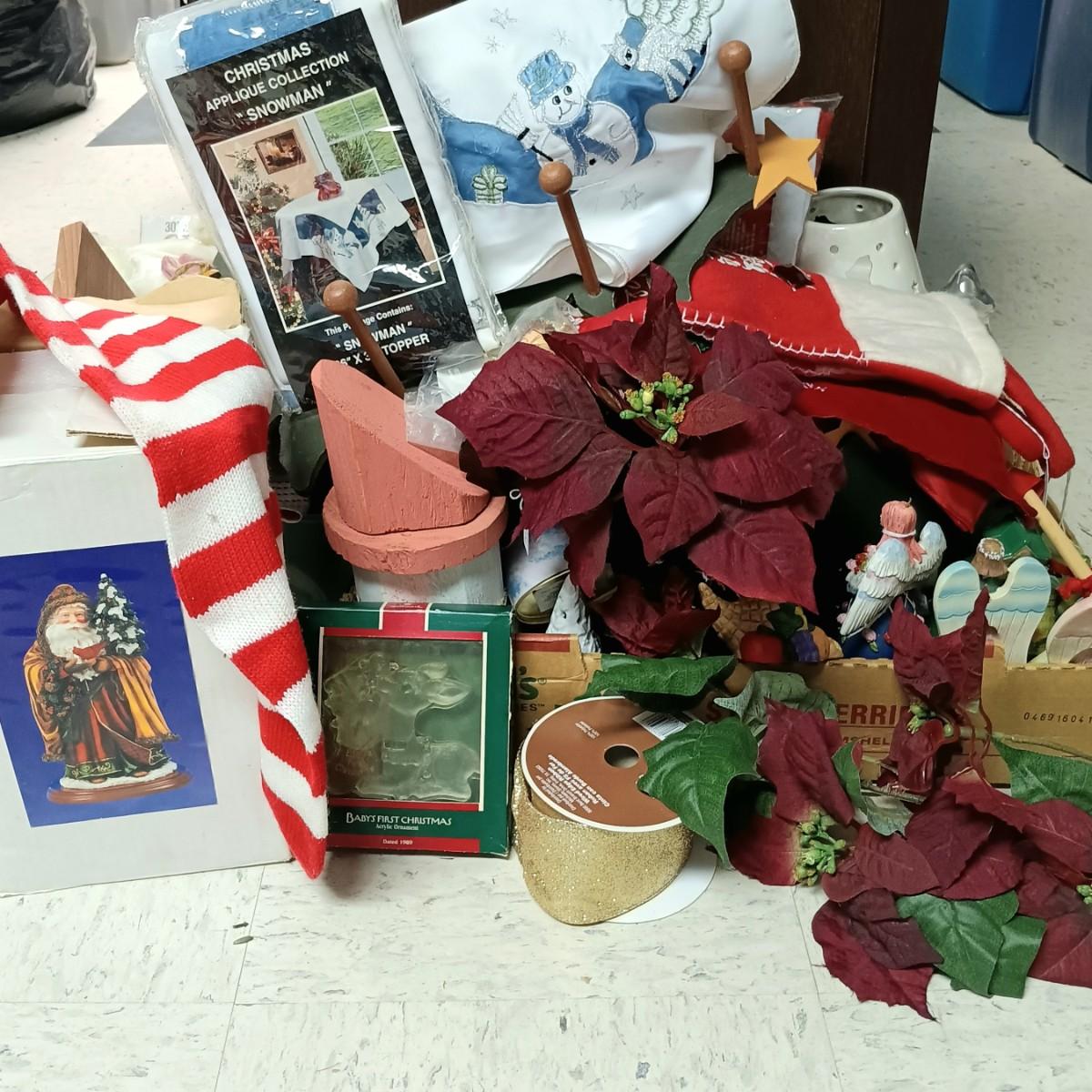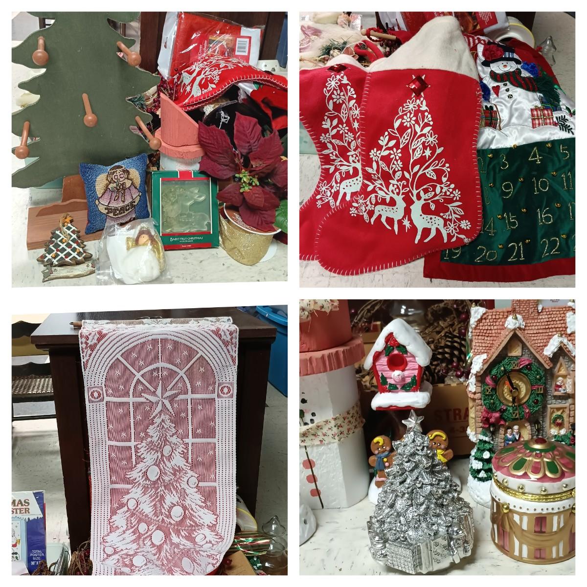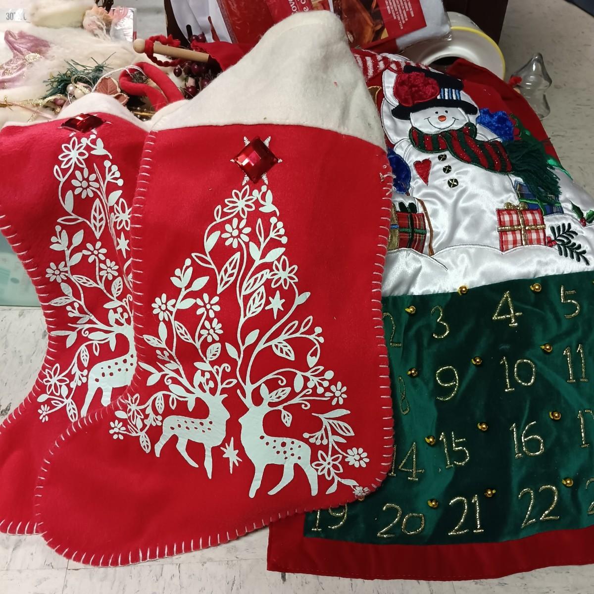 LOT 178B: Christmas Decor- Stockings, Banners, Wood Plaques, Decorations and More