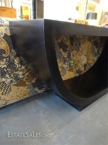 LOT 98A: MID CENTURY MODERN U SHAPE CONSOLE TABLE, BLACK ENAMEL