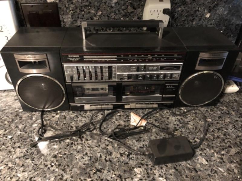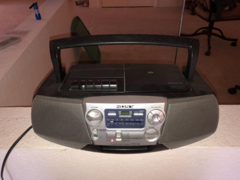 Lot 99. 2 Boom boxes, small kitchen television, clock--WAS $75““NOW $56.25