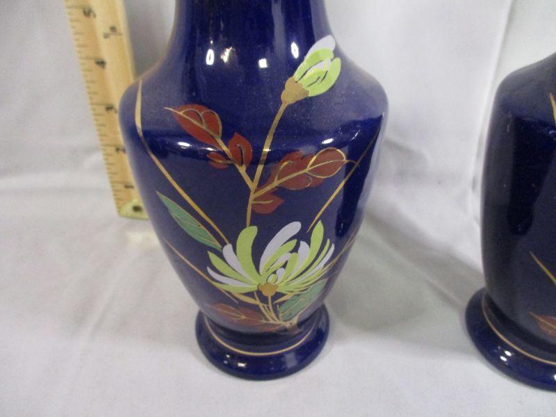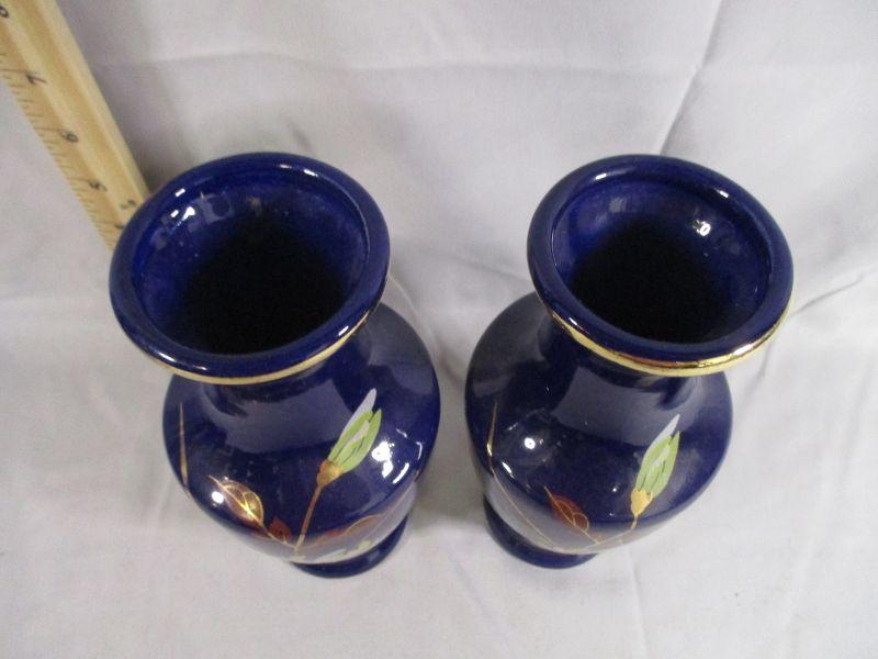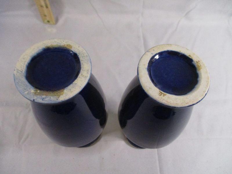 Lot 99 - (2) Cobalt Blue Asian Theme Vases