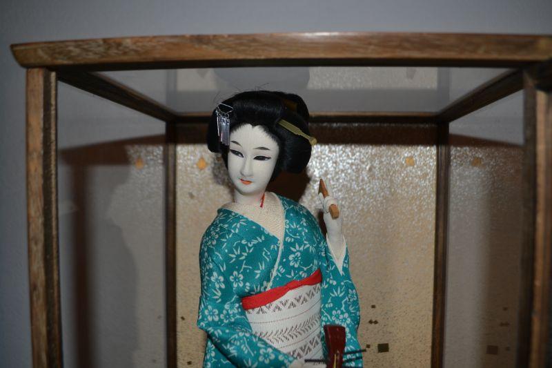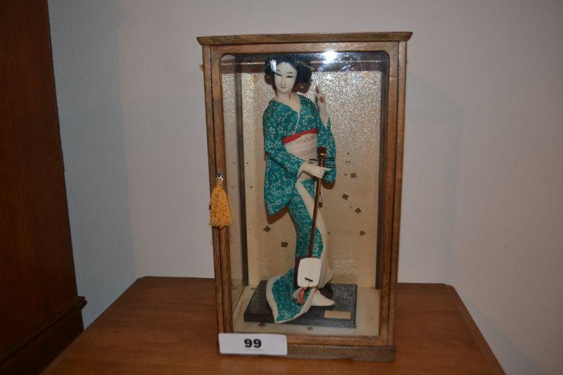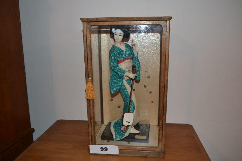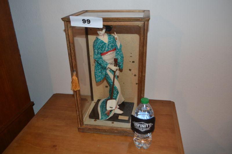 LOT 99 VINTAGE JAPANESE DOLL IN GLASS DISPLAY CASE
