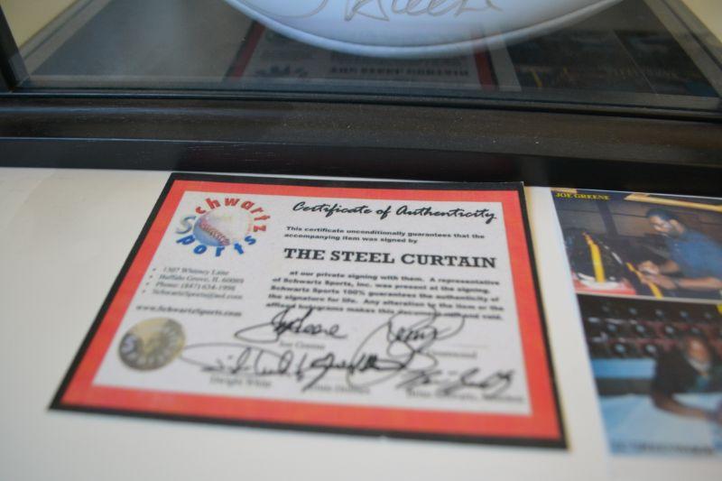 LOT 99 SIGNED STEELERS STEEL CURTAIN SIGNED BALL WITH CERTIFICATE OF AUTHENTICITY