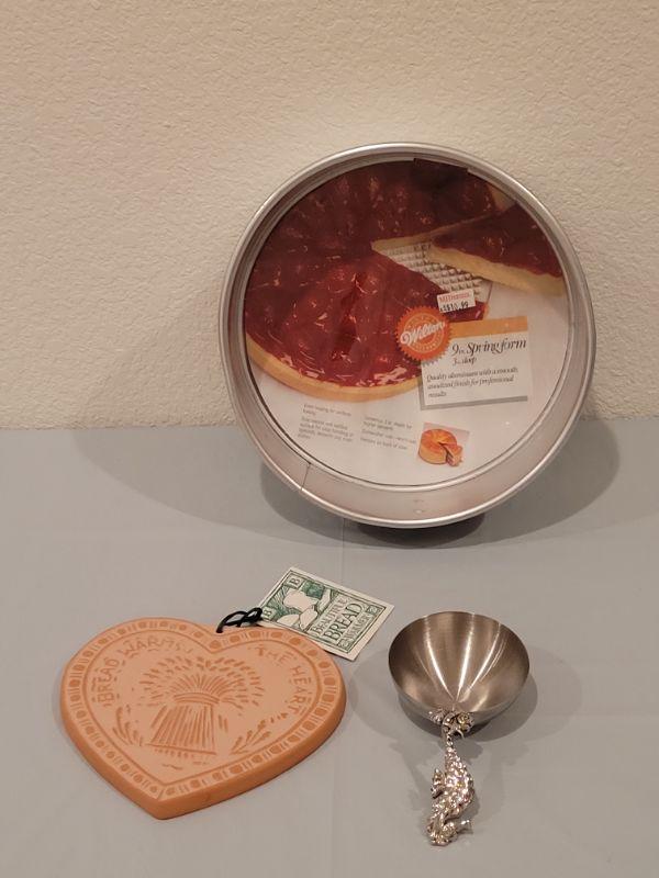 Lot 99: Wilson Spring Pan, Bread Warmer Tile and Seahorse Scoop