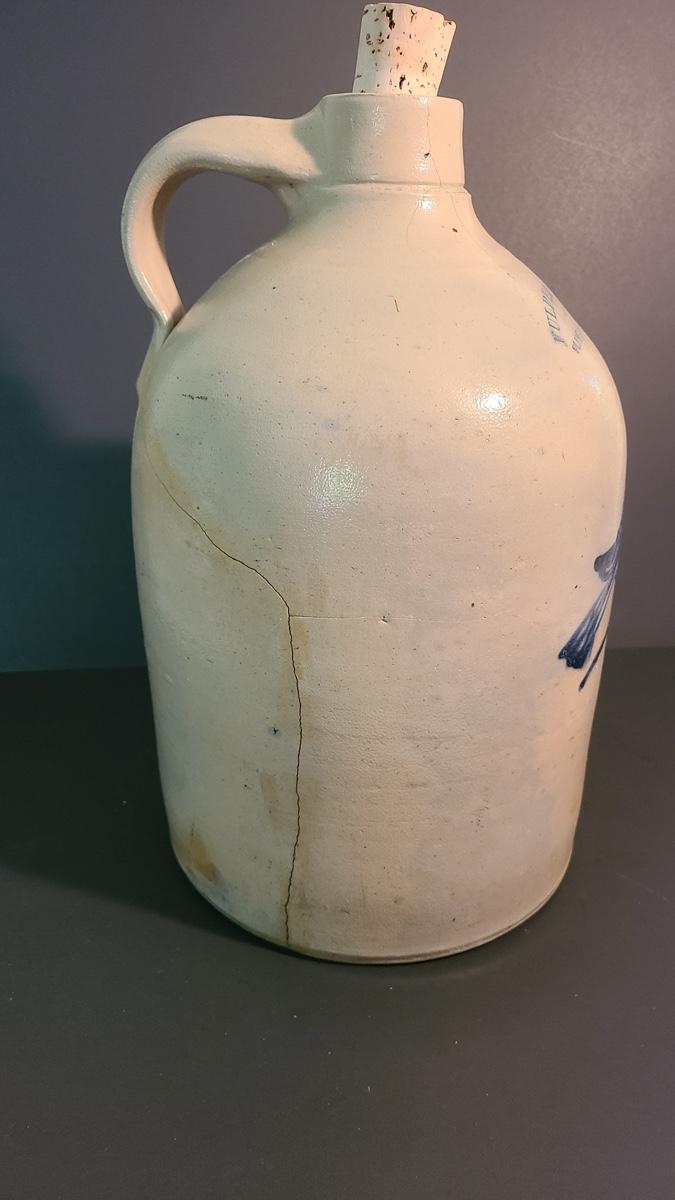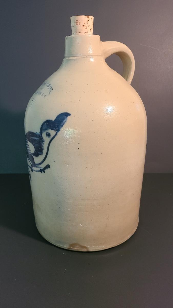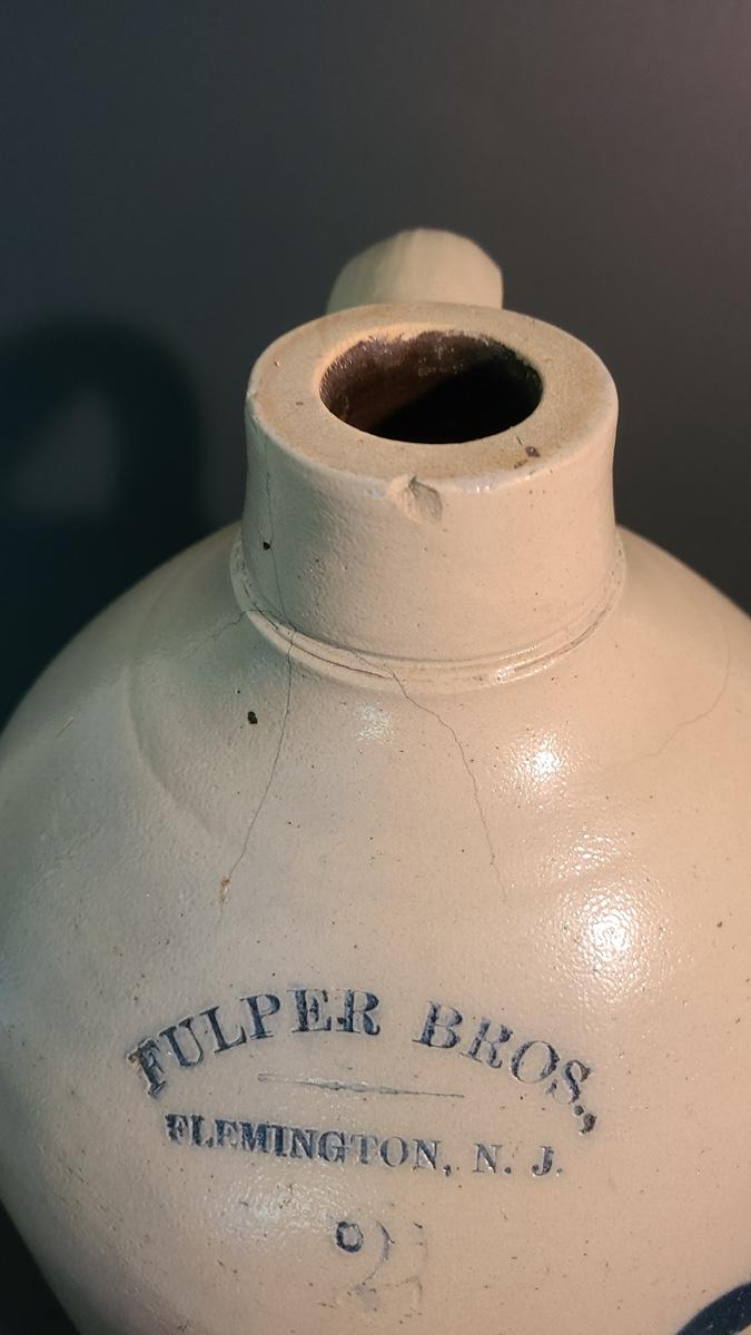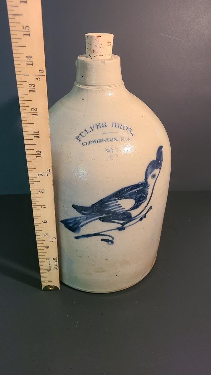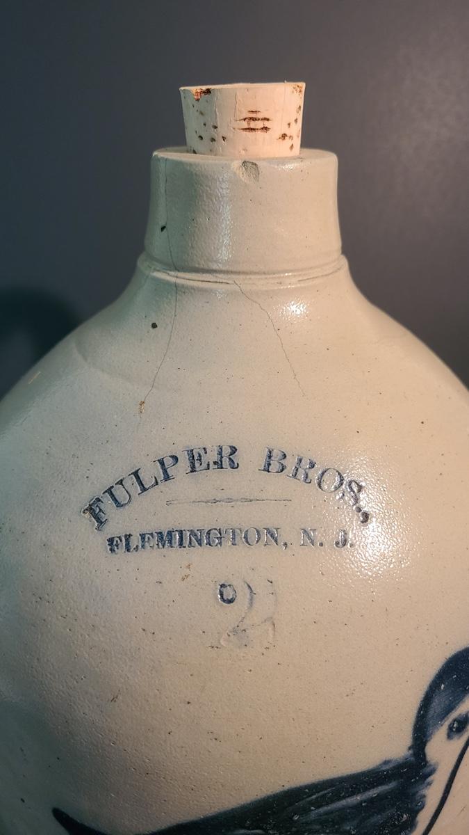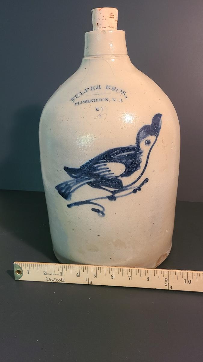 Lot 99: Fulper Bros. Flemington NJ 2 Gallon Jug with Cobalt Bird