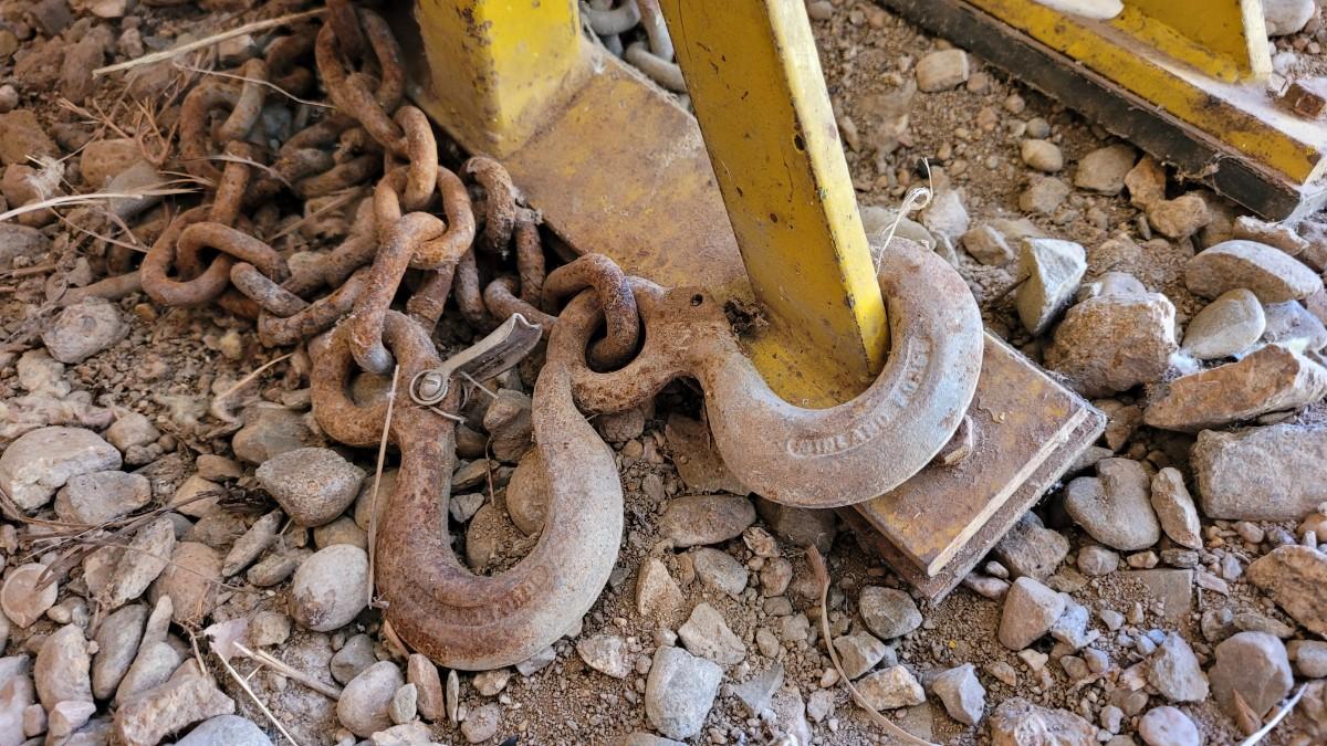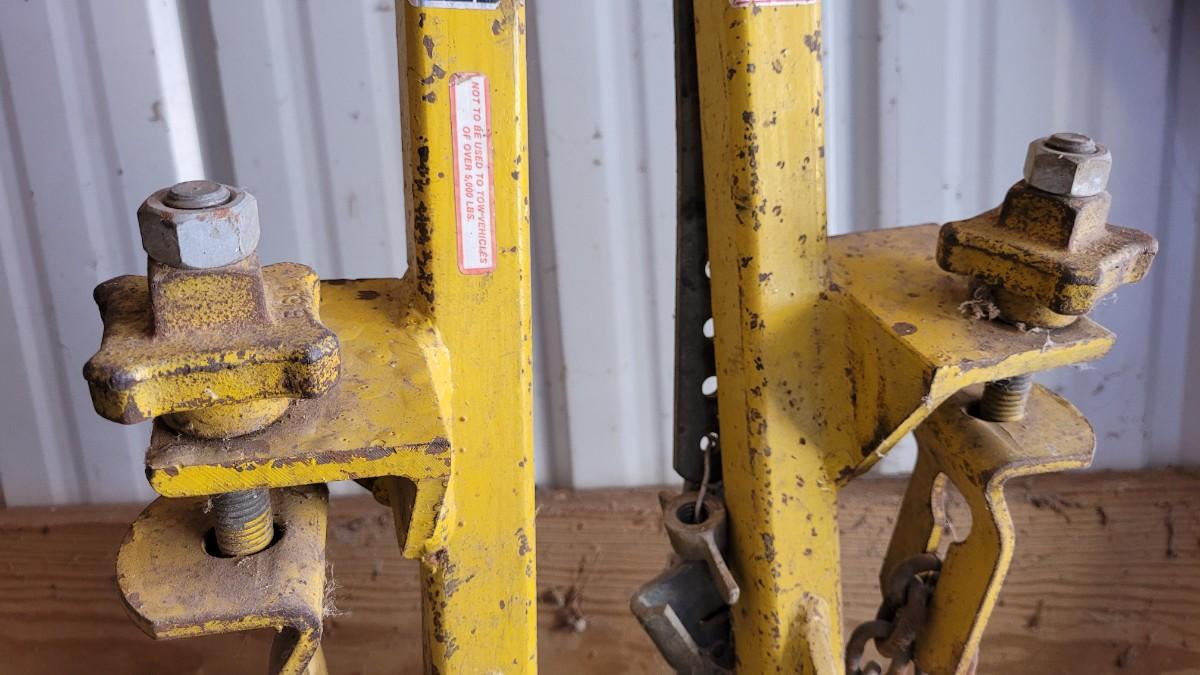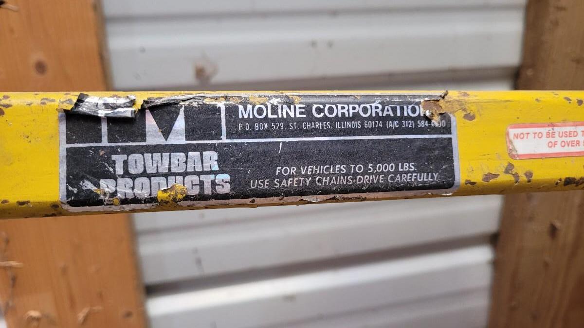 Lot 99: Vintage MOLINE 5000lb Towbar Hitch 40" Tall Yellow w/ (2) Hooks
