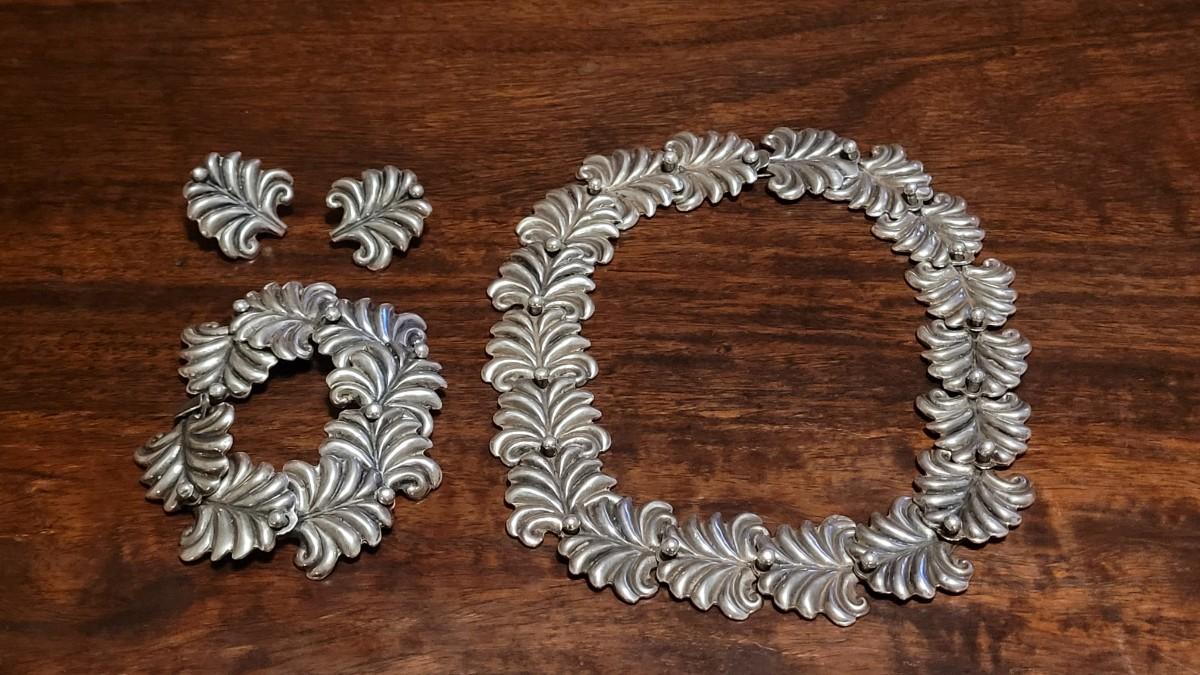 Lot 99: Vintage Pre-1948 TAXCO Sterling Necklace, Bracelet & Earrings Set