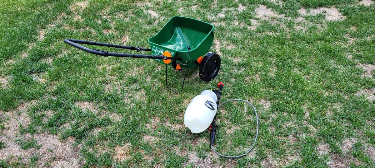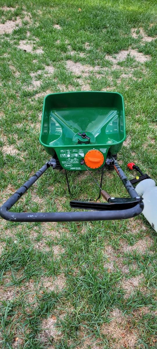 Lot 99: Scott's Turf Builder Seed Broadcaster + ROUNDUP Water Sprayer