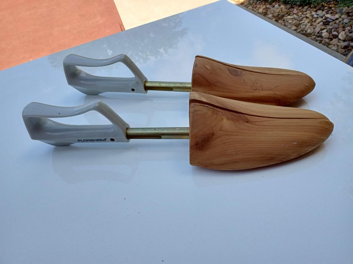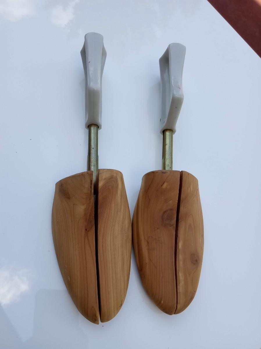 WOODEN SHOE FORMS, 2 BLACK AND 1 BROWN SIZE 8 1/2 MEN'S SHOES