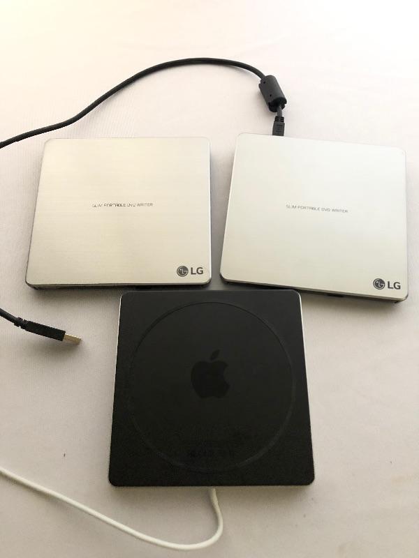 Three DVD Writers and Players with 2 cords for your writing and listening pleasure. Two are LG and one Apple. Shipping available.