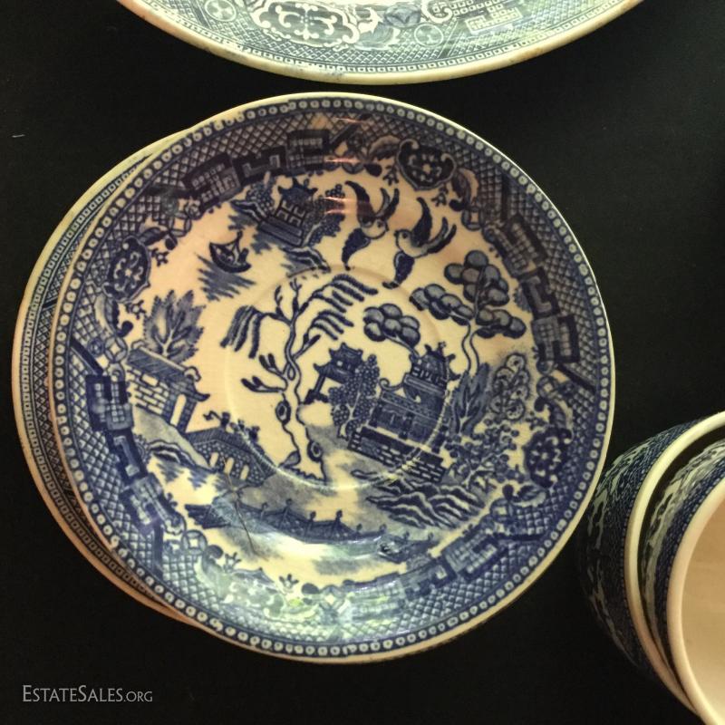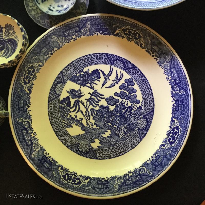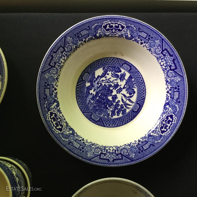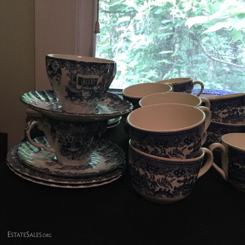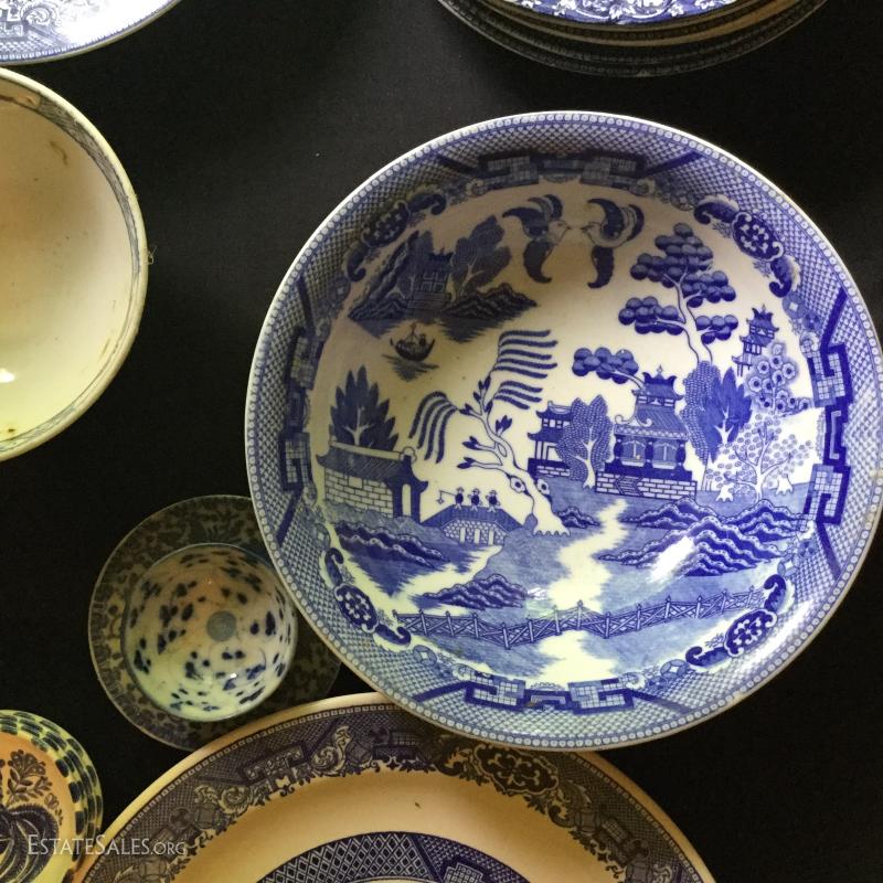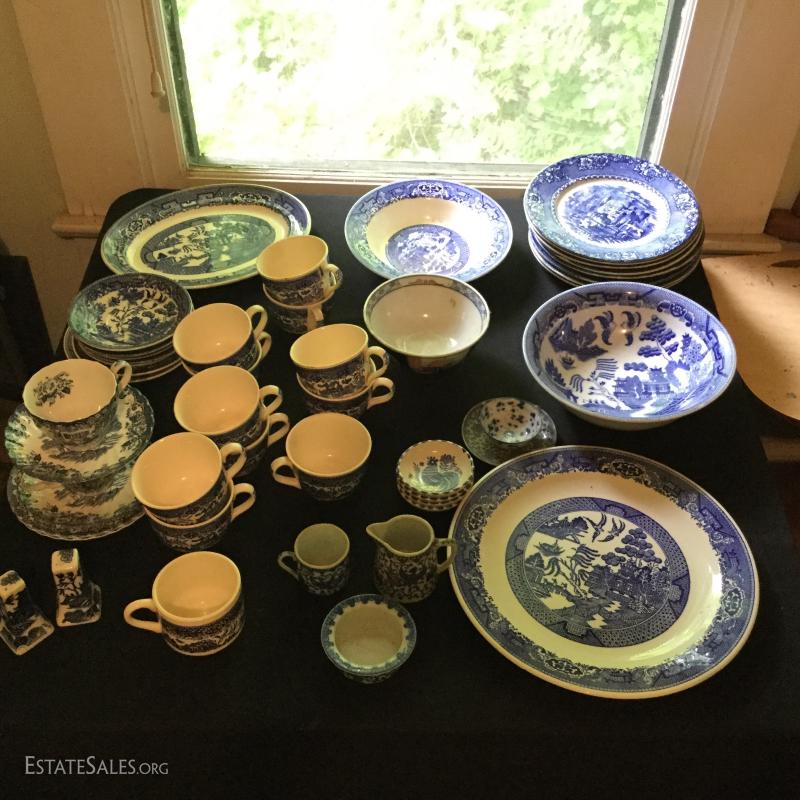 Blue & White fine china - there is a total of 49 pieces and many are Blue Willow. Pieces are not matching but mostly Asian designs. This lot is available for shipping or local pick up in Saluda, NC.