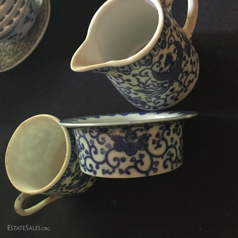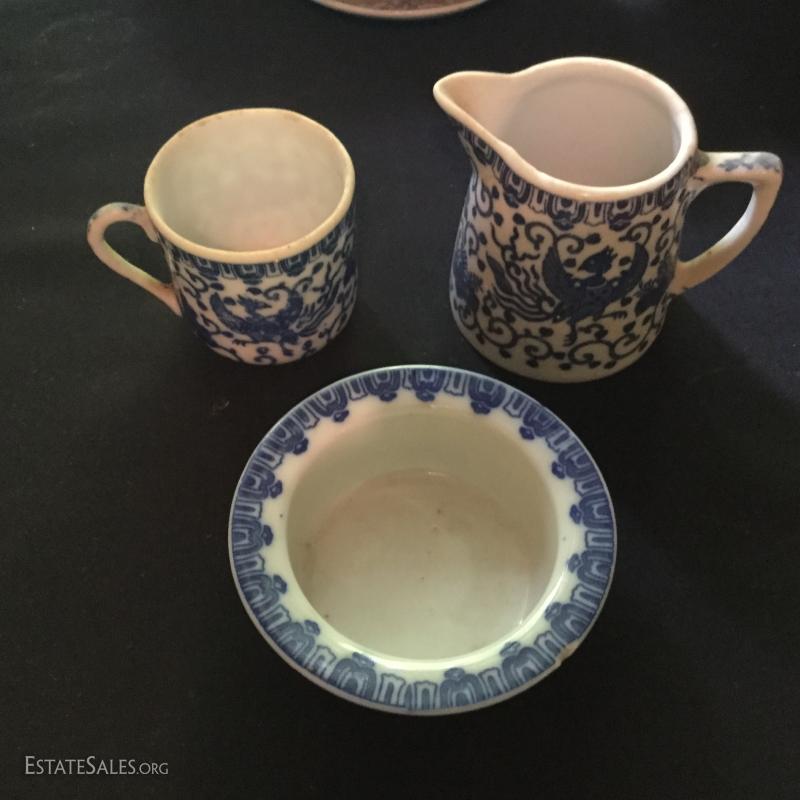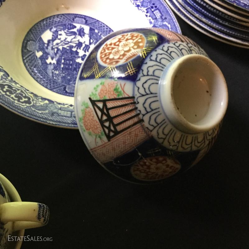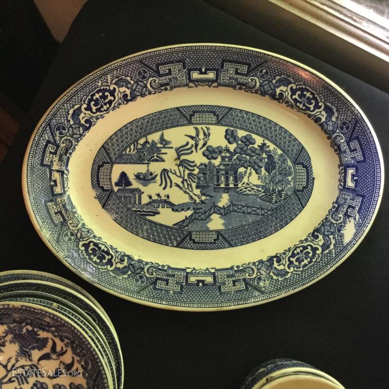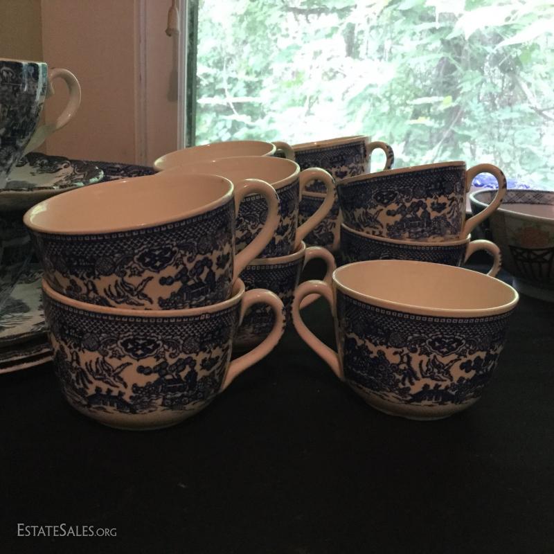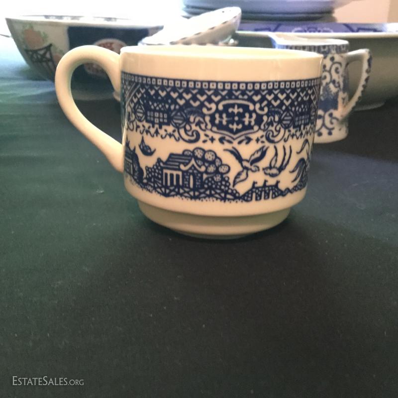 Blue & White fine china - there is a total of 49 pieces and many are Blue Willow. Pieces are not matching but mostly Asian designs. This lot is available for shipping or local pick up in Saluda, NC.