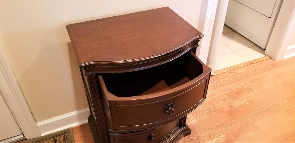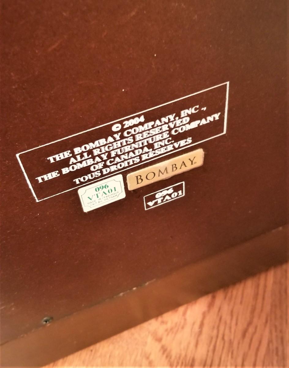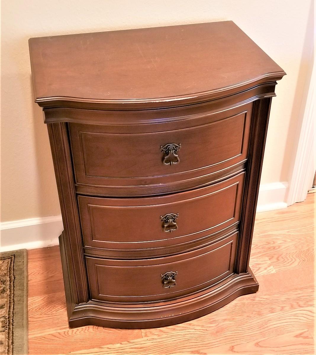 Another cute Bombay Company piece - versatile little 3-drawer chest - 22.5" across, 16.5" deep, 29" tall. A few chips to the finish on the front edge (see photo).