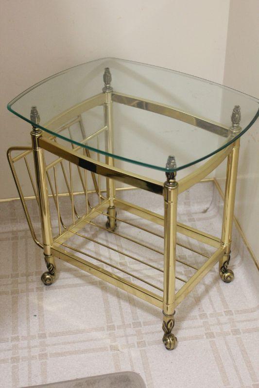 Lot 99 Brass Magazine Side Table with Glass Top