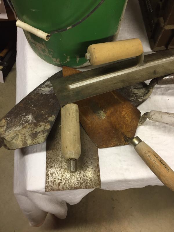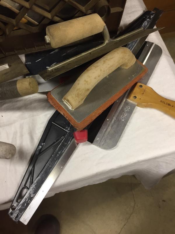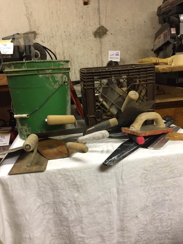 Lot - 99 Cement Trowels with Drywall Tools and More