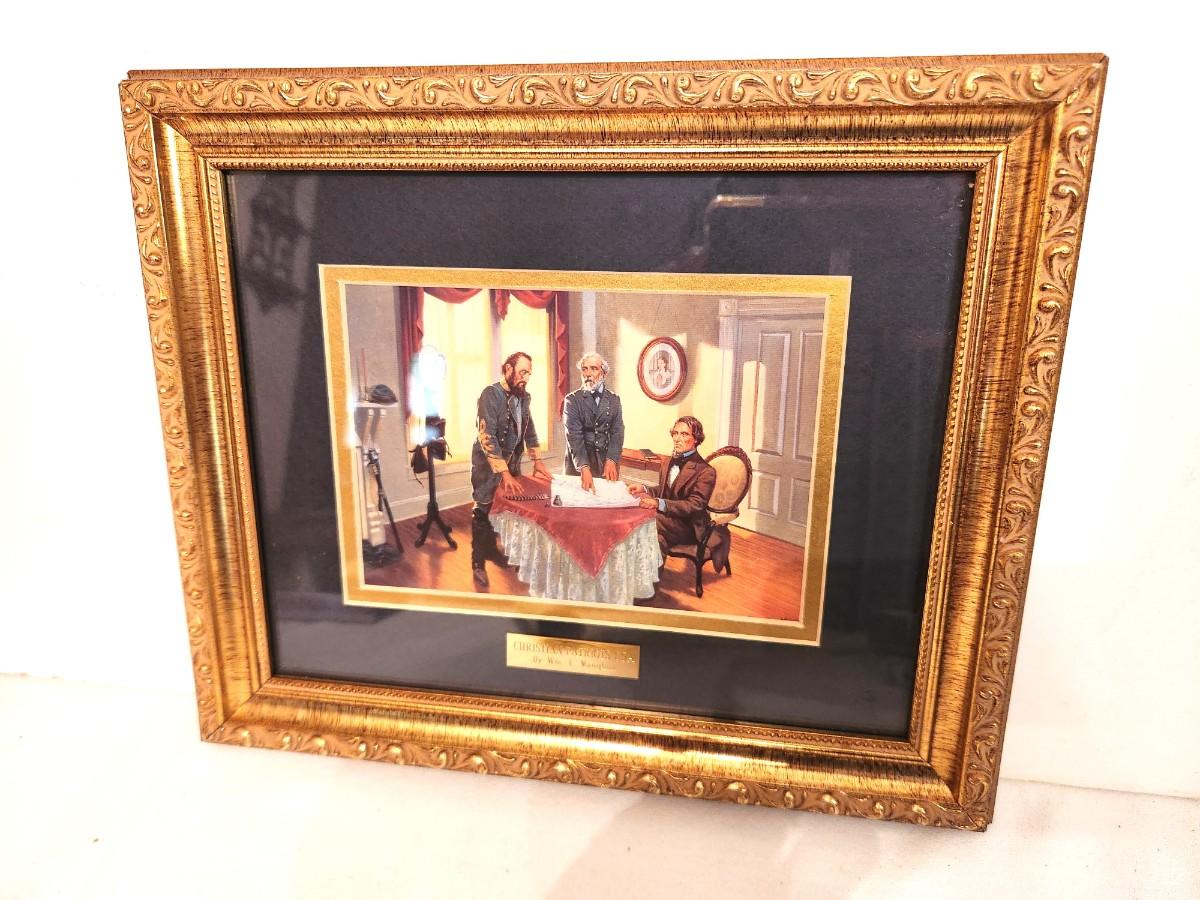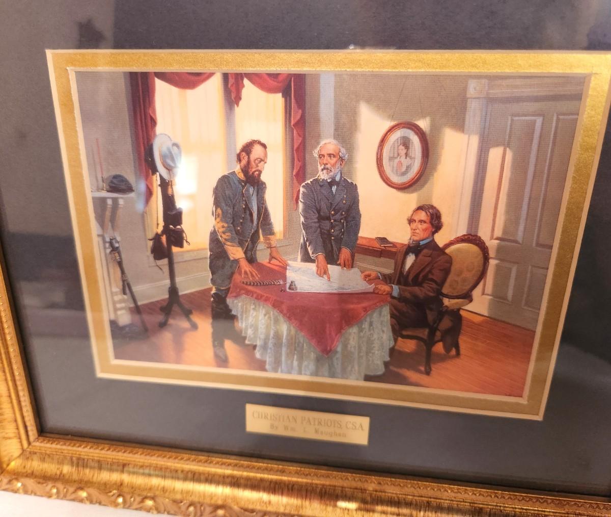 "Christian Patriots" by artist Wm. L. Maughan - Thomas Jackson, Robert E. Lee, Jefferson Davis. Nicely framed with double mat. 12" x 10".
