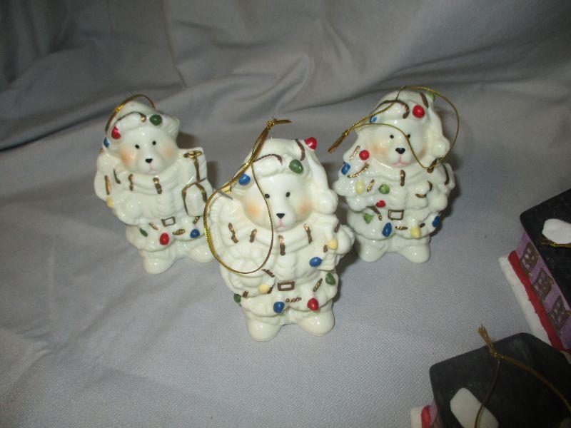 The pieces are variety of medium - ceramic, wood, resin. The only one with an issue is the ornament that has Santa on a phone. The phone is attached to his arm which is no longer attached to his body. This is a very clean break and with a touch of glue, no one will ever see that it broke.