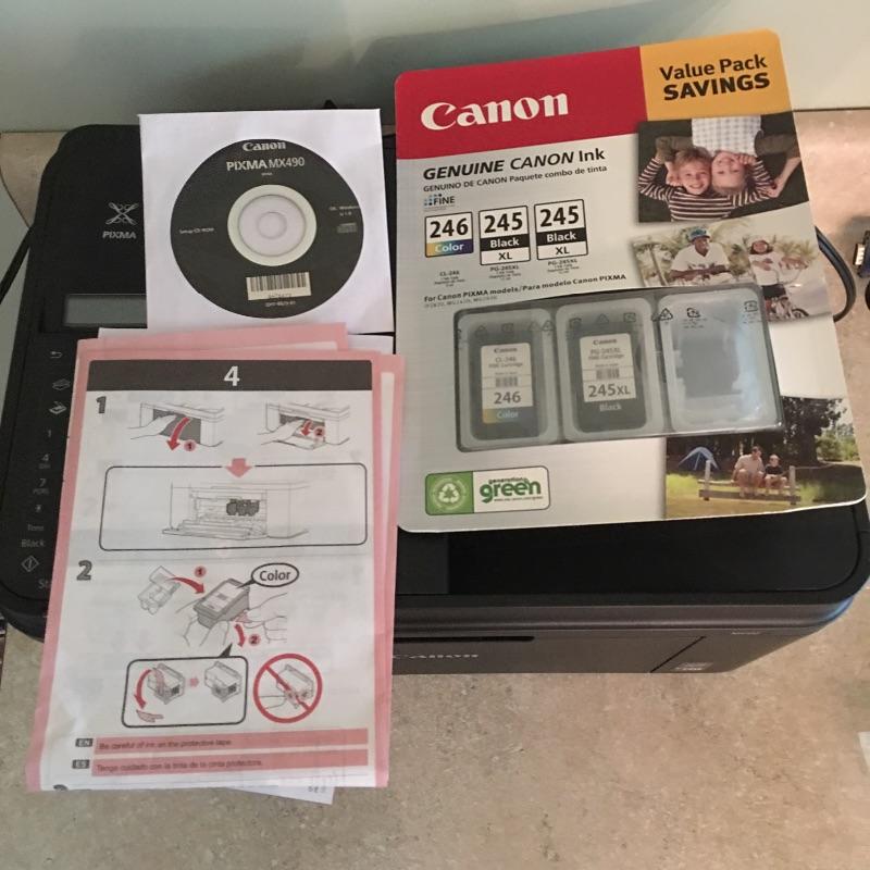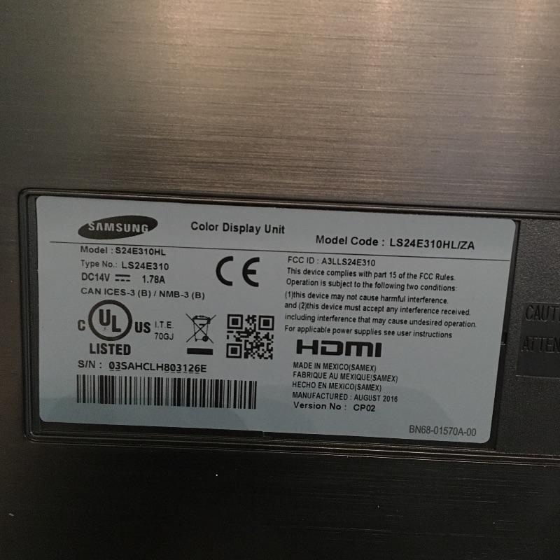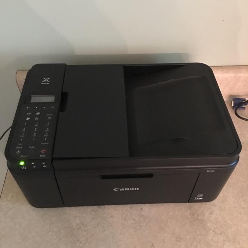 Computer peripherals includes Canon printer model # MX492, Samsung 24” monitor model # S24E310, Apple wireless keyboard model # MC184LL/B.