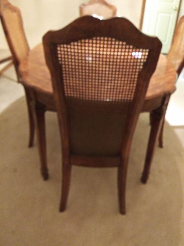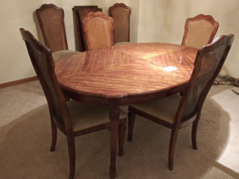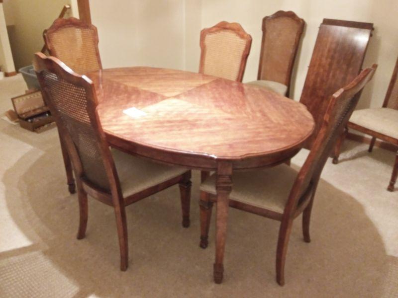 6 CANE BACK, UPHOLSTERED SEAT CHAIRS