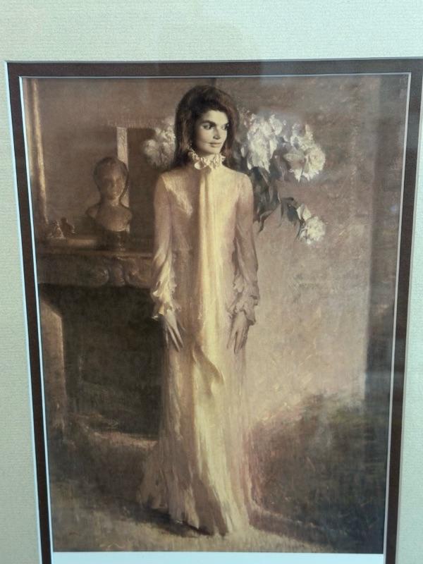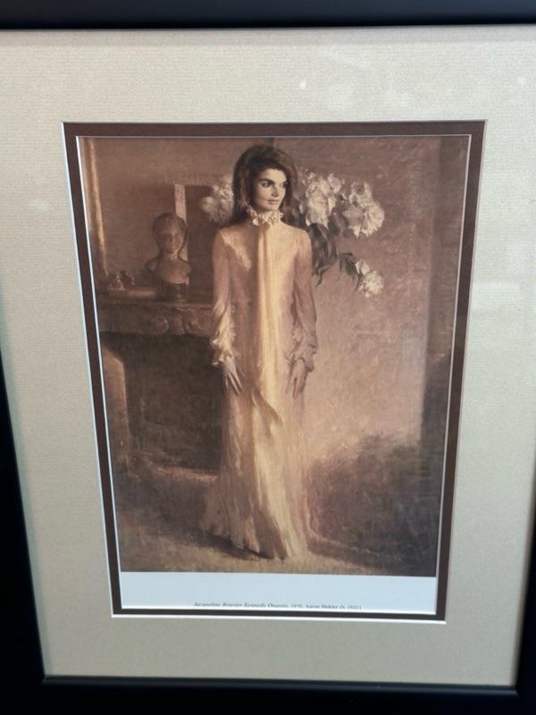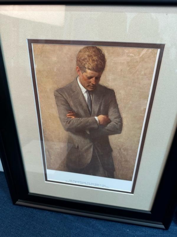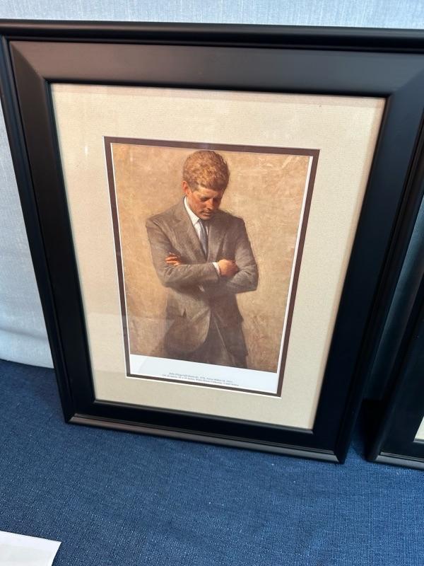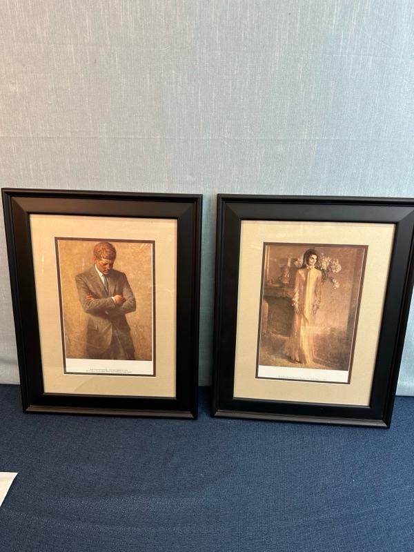 Framed prints of John F. Kennedy and Jacqueline Kennedy, 15 1/2” x 19 1/2”