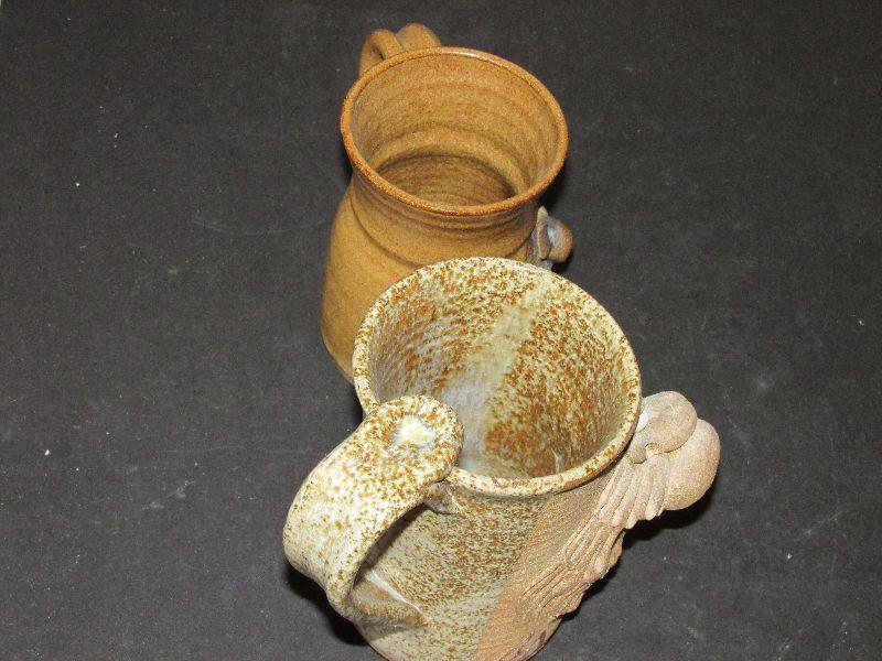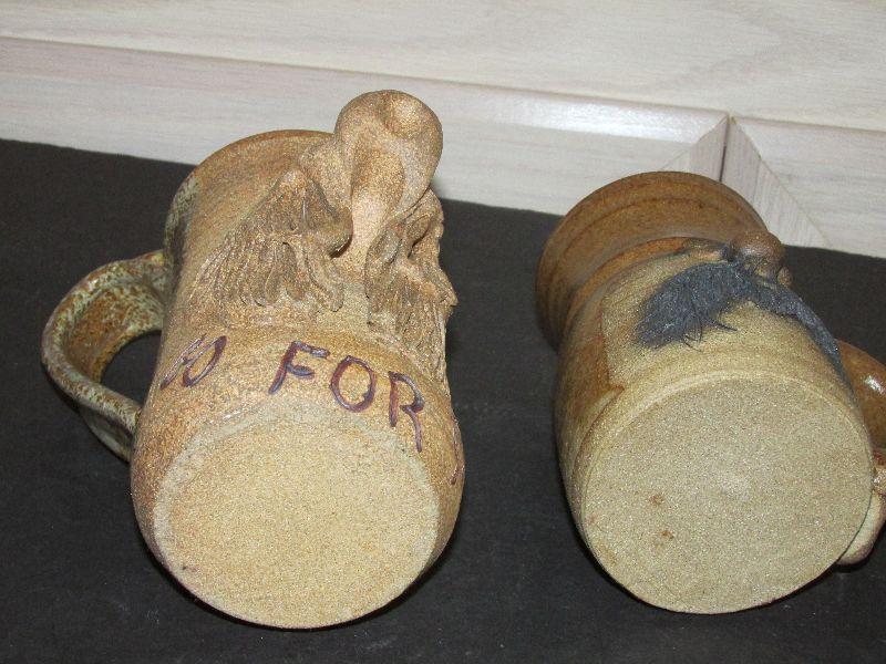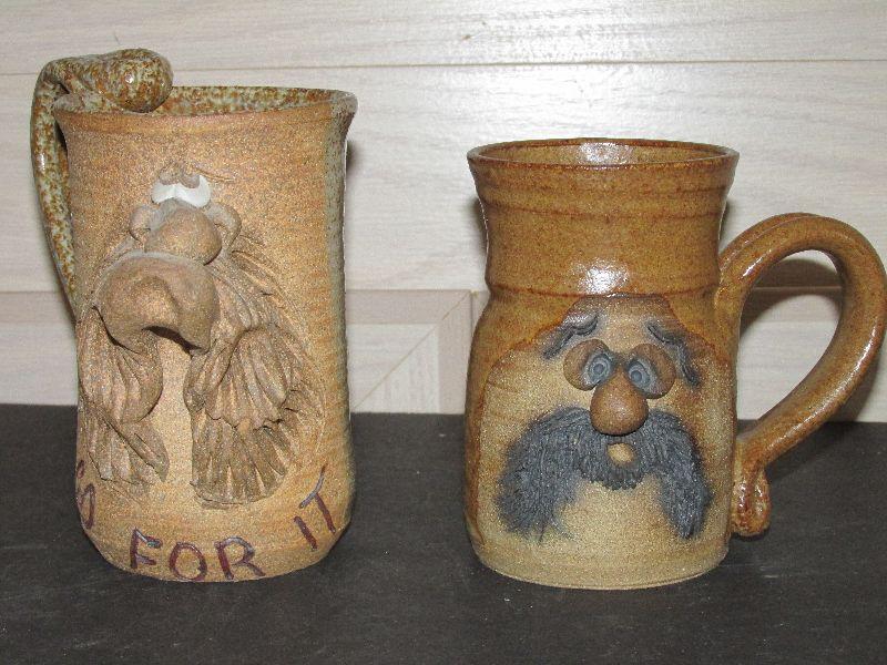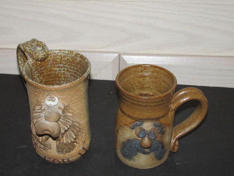 Pair of funny face mugs. One is signed on the bottom 1980 Foothills Pottery. No damage to mugs at all.