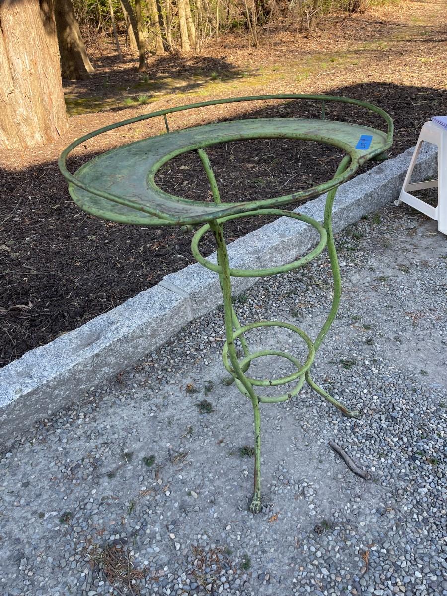 Very sweet table, perhaps as a dry sink with a bowl and pitcher or bird feeder/bath? So many possibilities!