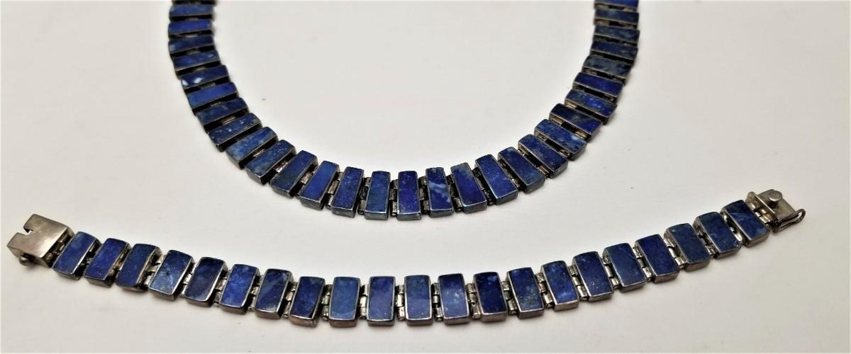 Lot #99 Heavy Sterling Silver and Lapis Necklace & Bracelet