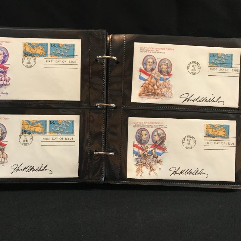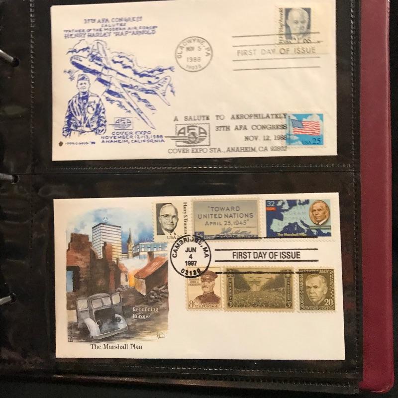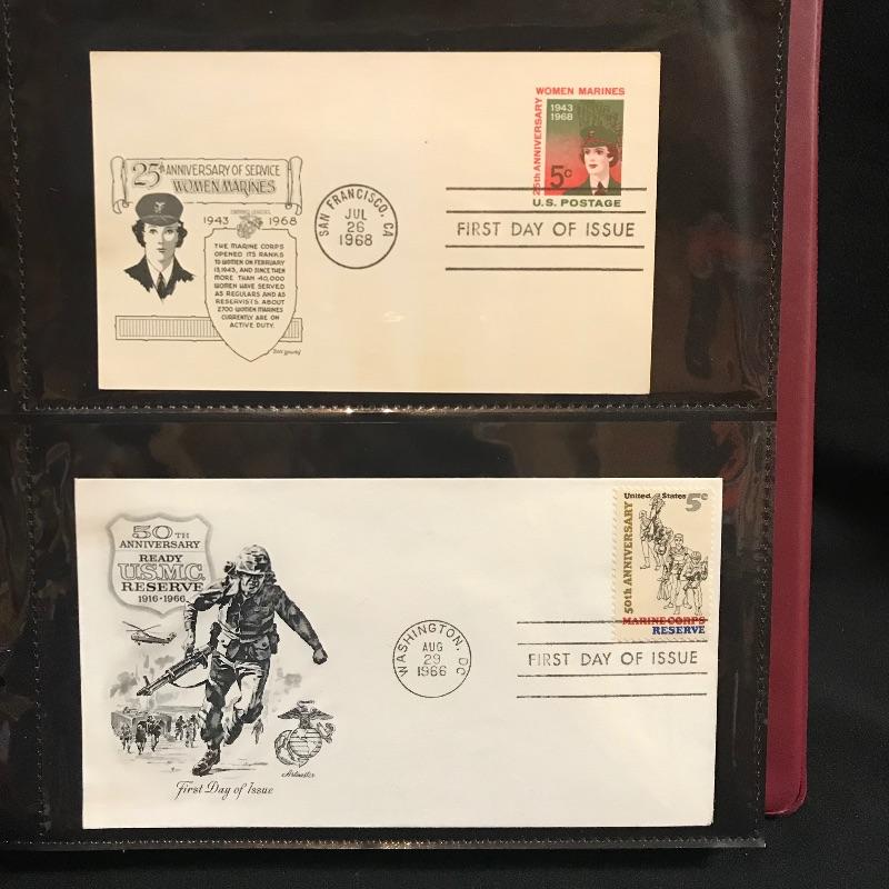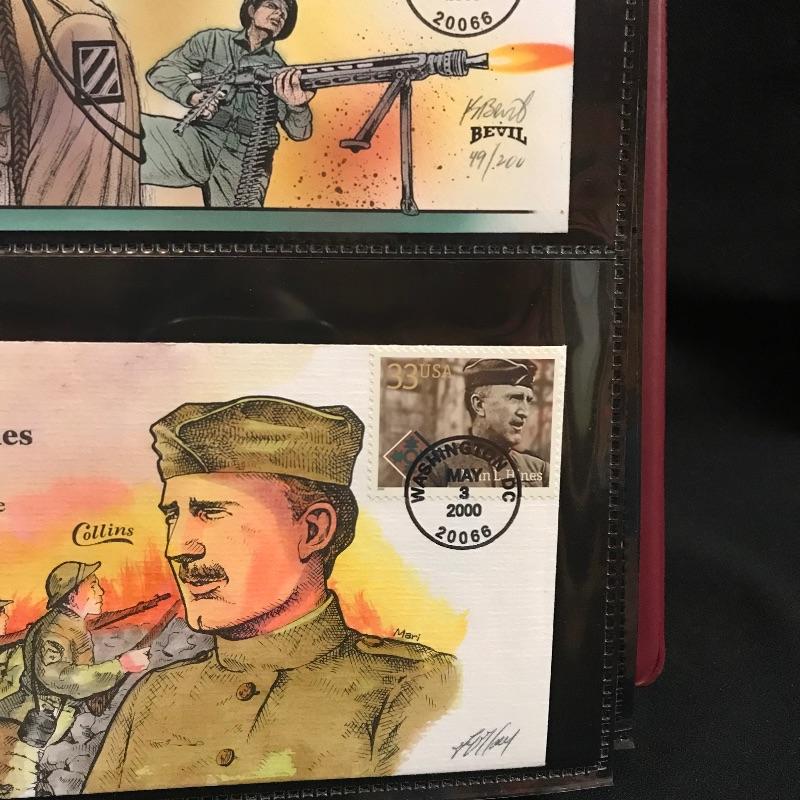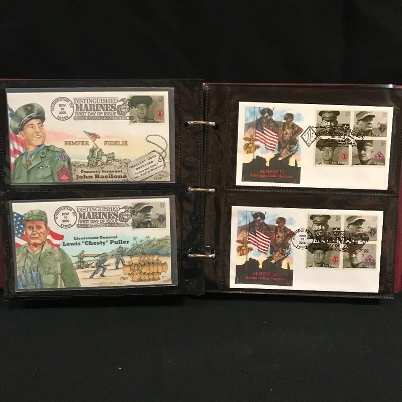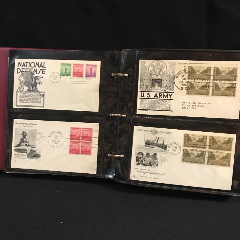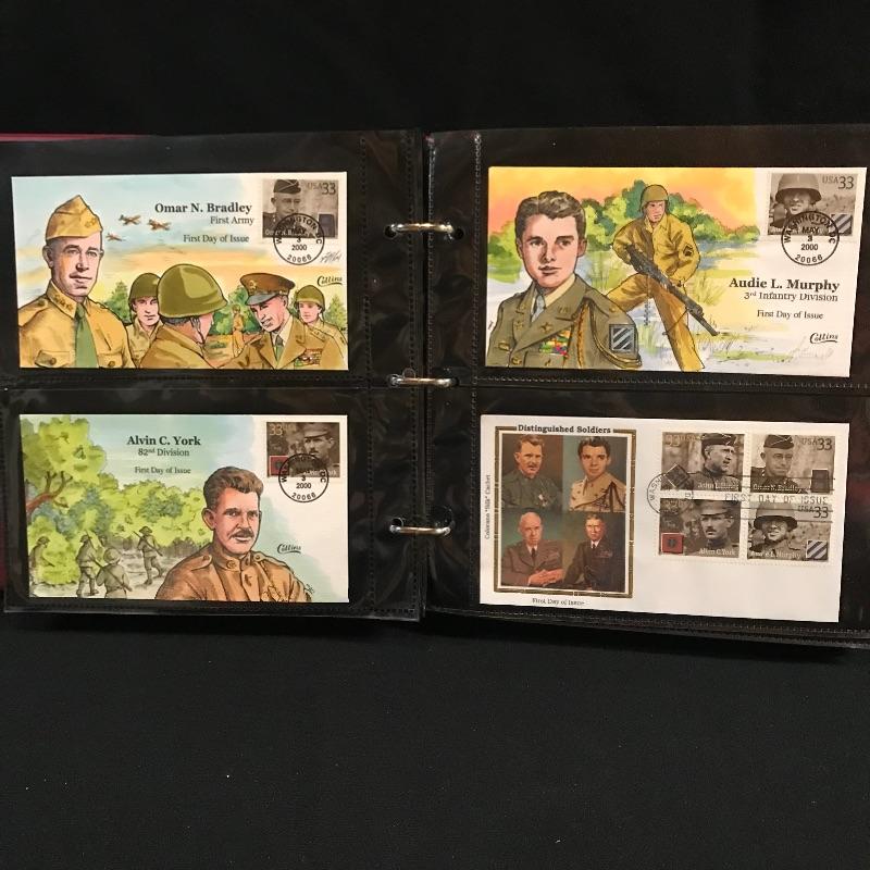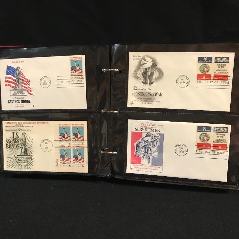 Large US wars commemorative 1st day covers collection. Two binders with a couple loose covers. Earliest cancelled stamps date into the 1930s all the way up to the 2010s. A few signatures were spotted among the covers.