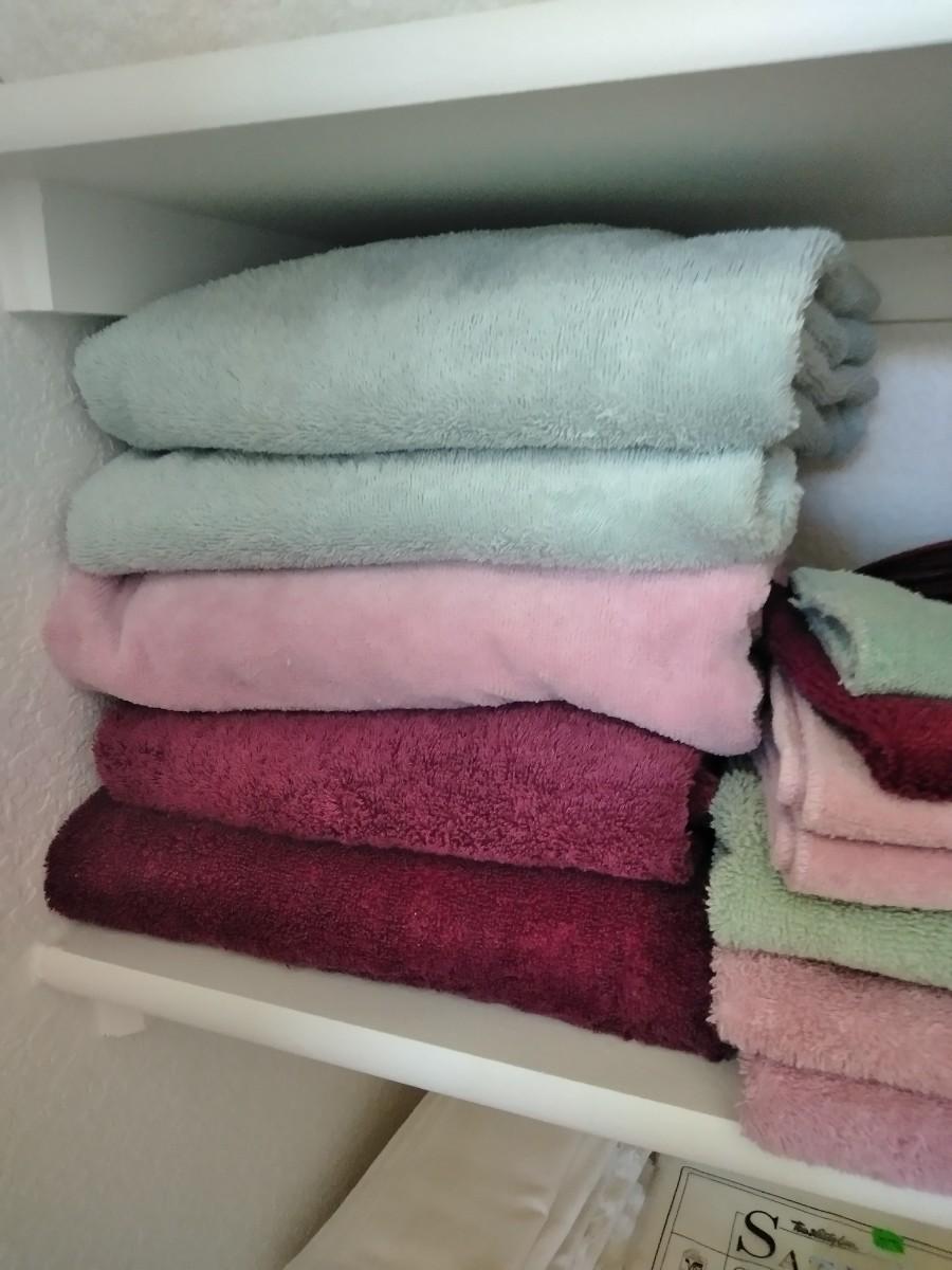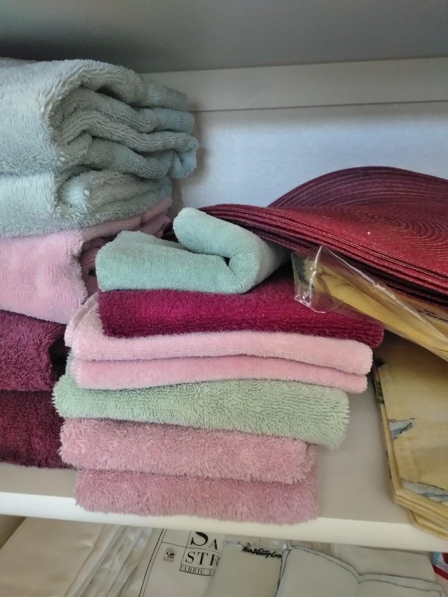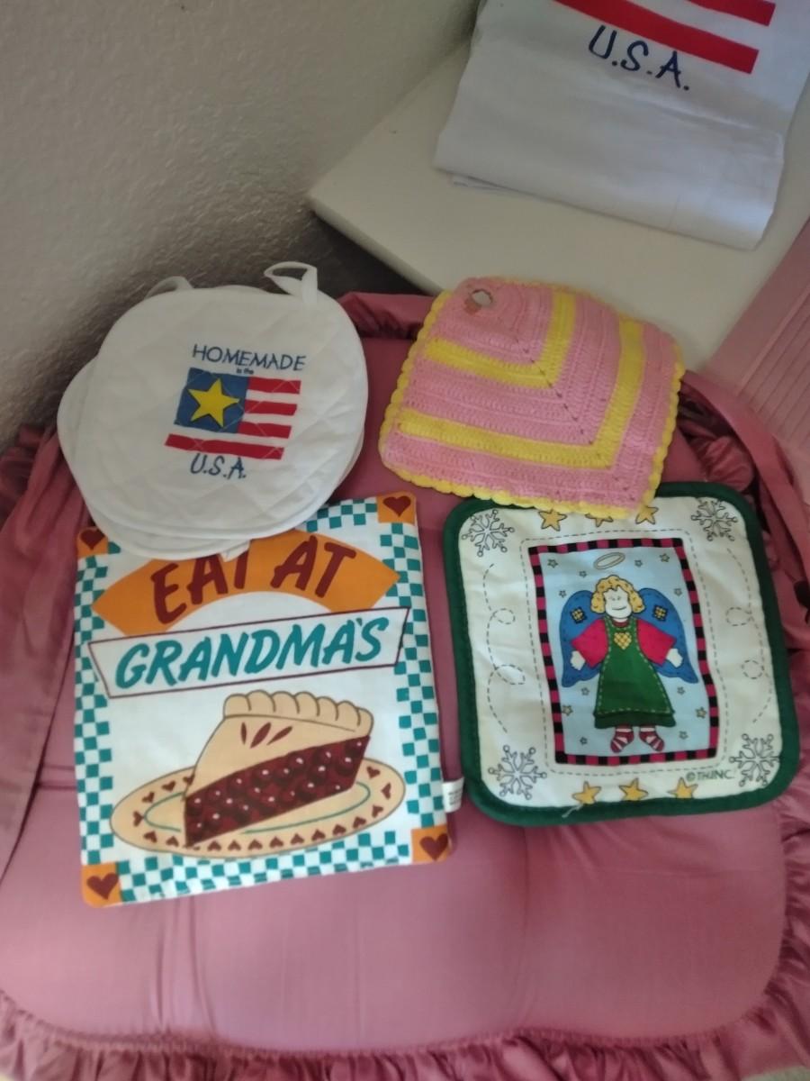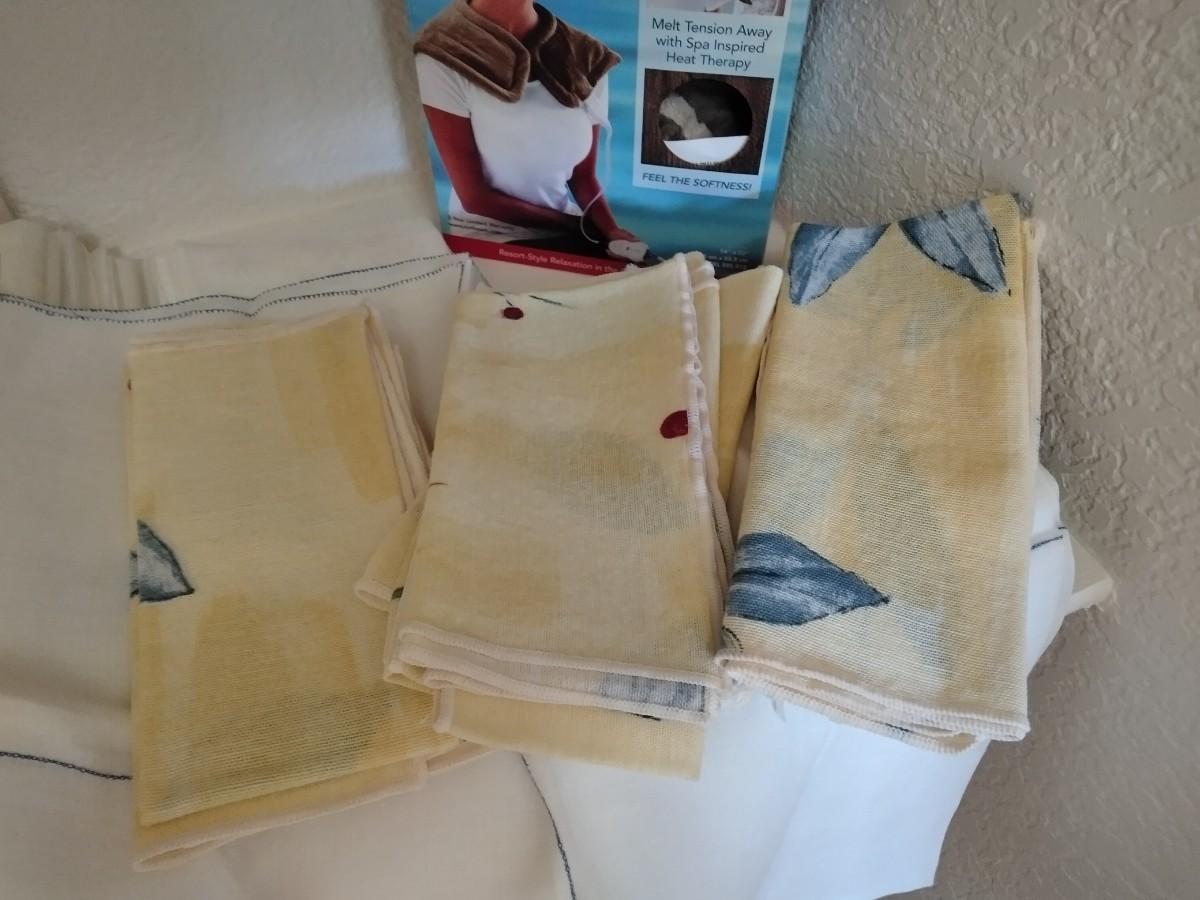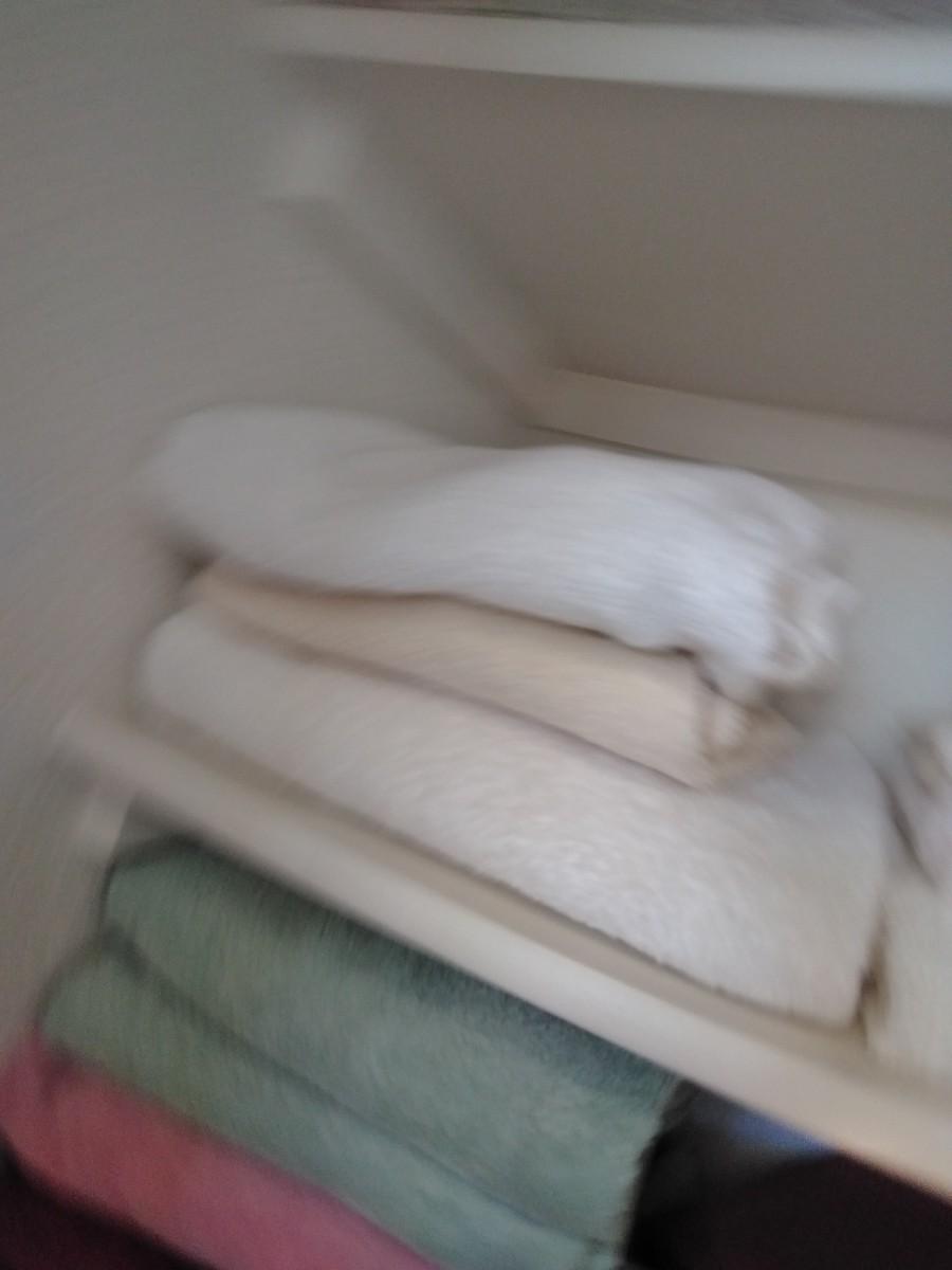 LINEN IN CLOSET. INCLUDES DININGROOM CHAIR PADS, TOWELS, DISH CLOTHS, TABLE LINENS, AND MORE.