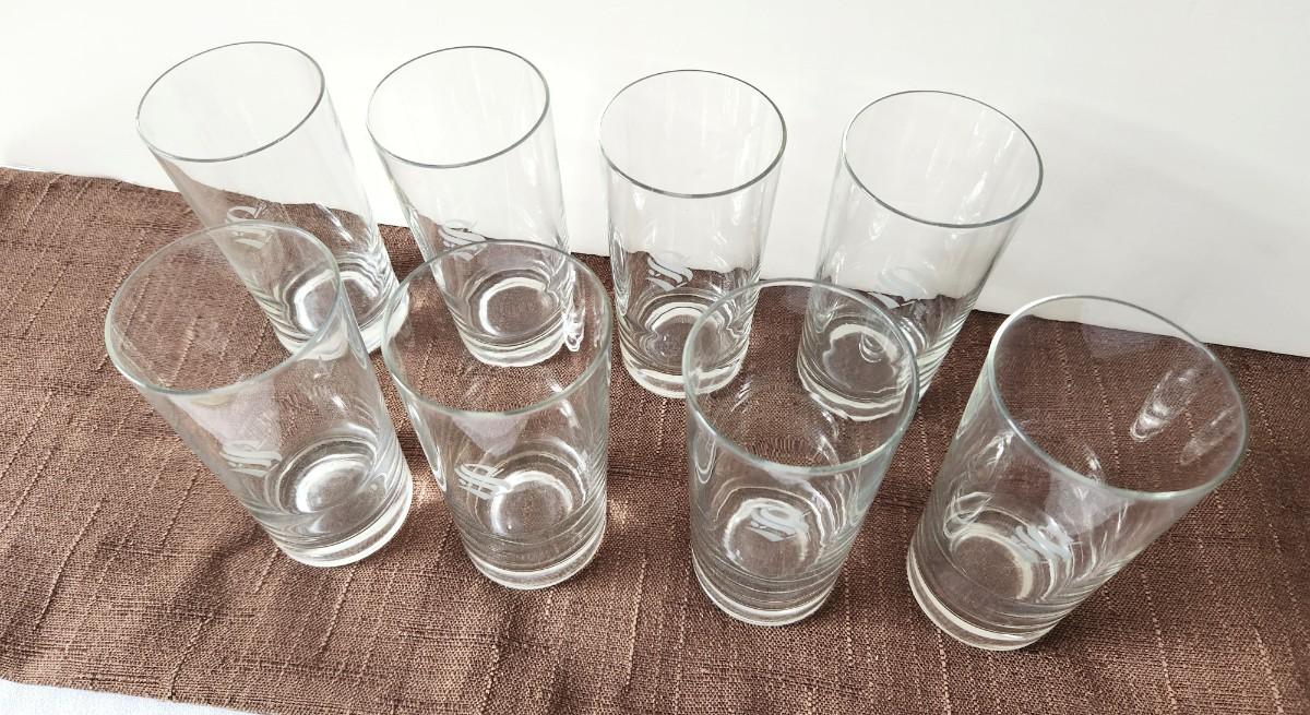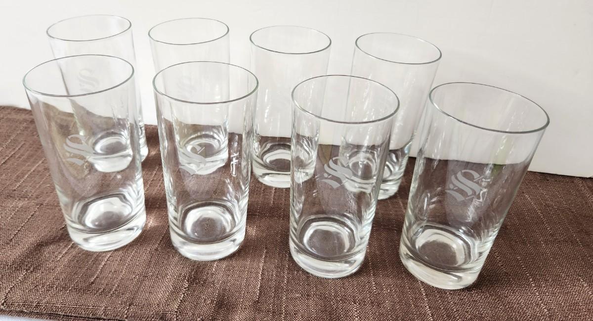 Lot of 8 vintage Iced Tea Glasses - initial "S". Each 5.75" tall - good condition.