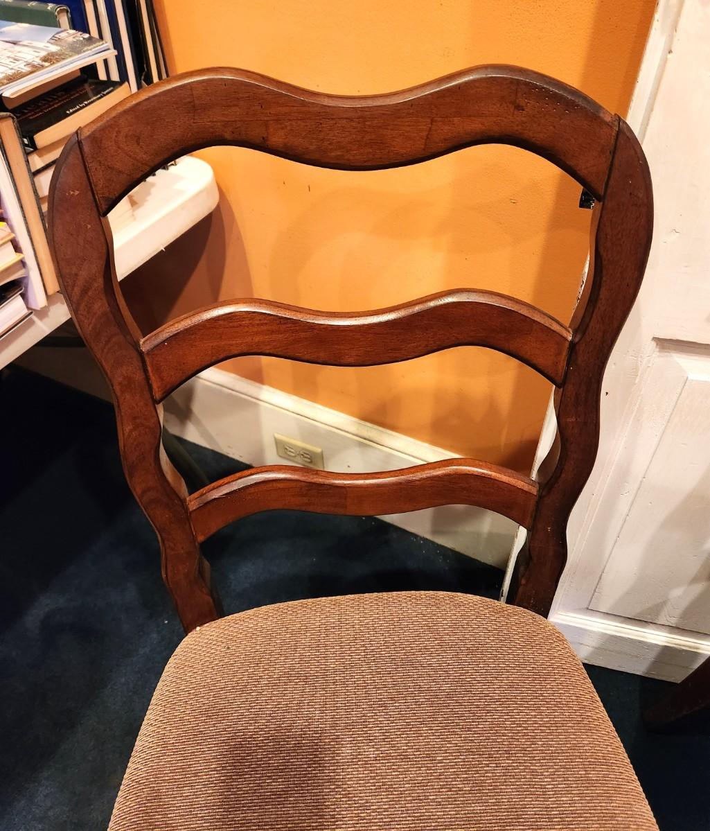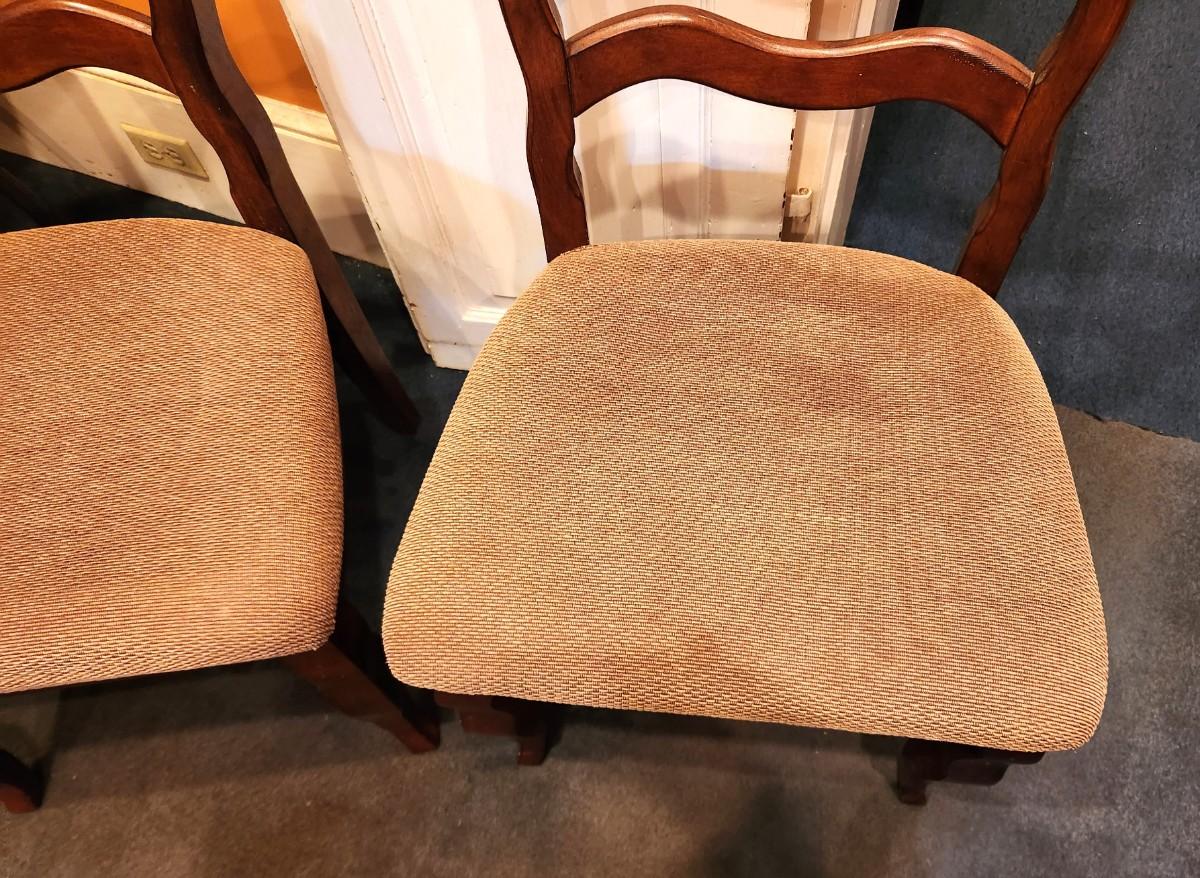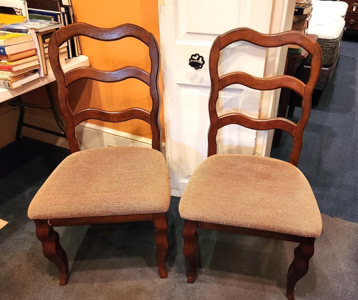 Nice pair of Bassett Side Chairs w/upholstered seats - good condition, sturdy. 20" across, 38.5" tall,
