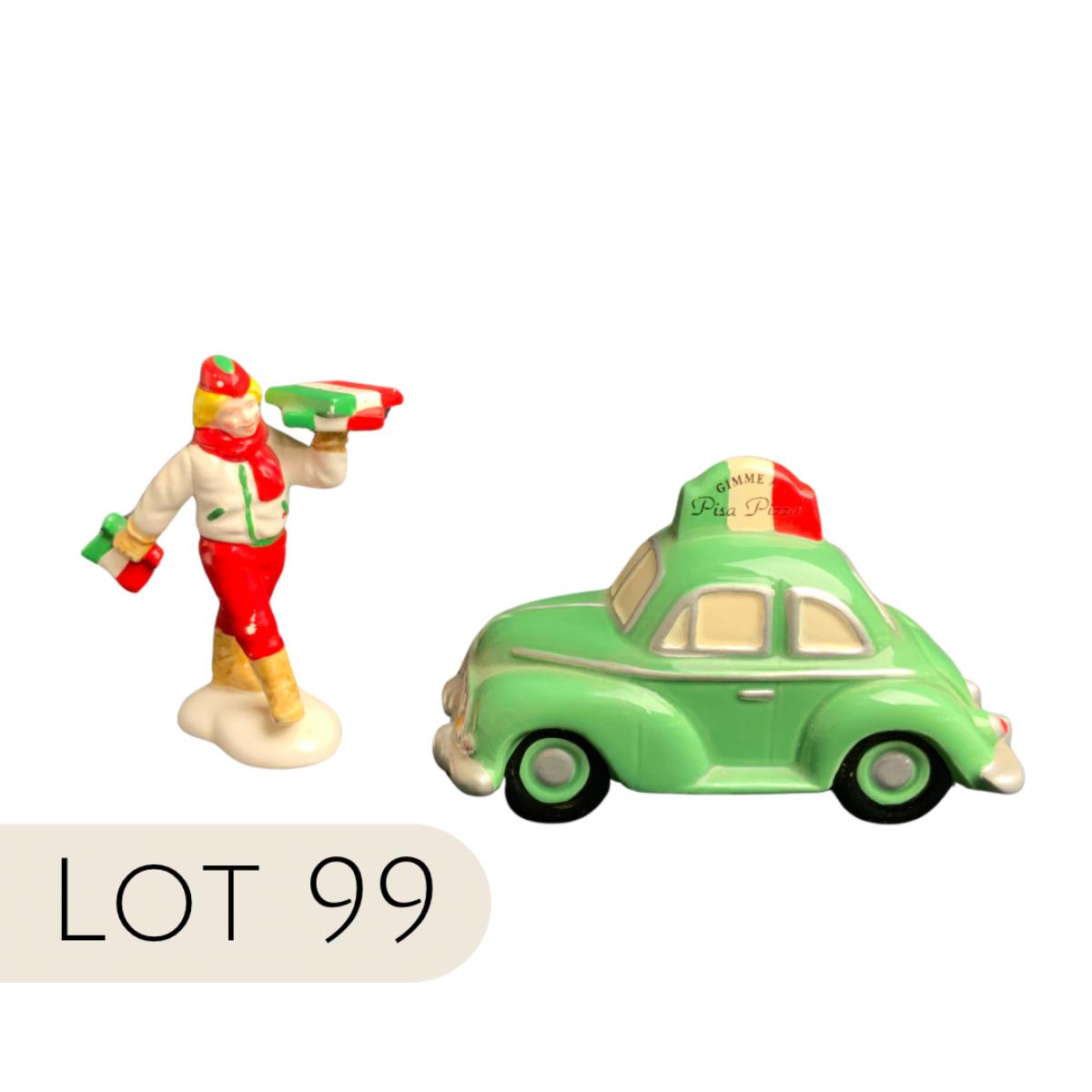 Pizza Delivery Set of Two Figures to add to Lot 98. Some paint loss and decal issues. Please see photos for details and condition. ::: Shipping is available on this lot. If you require shipping you must let us know at the close of the auction. We will coordinate with you after the item has been won. Shipping fees will include insurance up to or exceeding the value of all items being mailed. If you have any questions regarding this lot please contact the auctioneer either via this website, by direct email or by phone. PICK UP TIMES and other important information can be found in the TERMS and DESCRIPTION of the auction. Please take a look for pertinent information. Thanks! Any condition statement is given as a courtesy to a client, is an opinion, and should not be treated as a statement of fact. Reference to condition written, oral or within a condition report shall not be regarded as a full account of condition and may not include all defects, alterations, or restorations. Absence of a condition report does not imply a lot is flawless or lacking imperfections or damage. Katherine’s Auction & Appraisal Service shall have no responsibility for any error or omission. Returns shall not be accepted on the basis of condition.